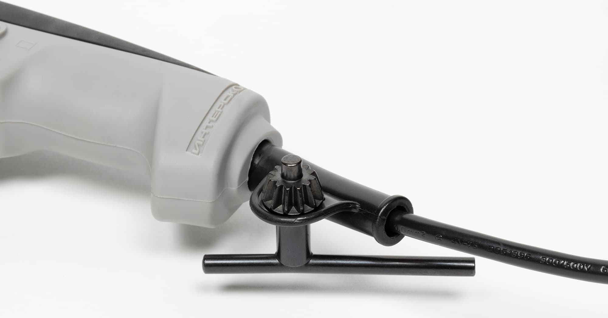 Сверло и другие насадки в патроне фиксируются прилагаемым ключом. Это гораздо надежнее, чем ручная фиксация быстрозажимным патроном, даже если инструмент имеет функцию блокировки шпинделя при неработающем двигателе. Такой патрон позволяет намертво закрепить оснастку с любой формой хвостовика — даже совсем нестандартной или давно не использующейся в промышленности.