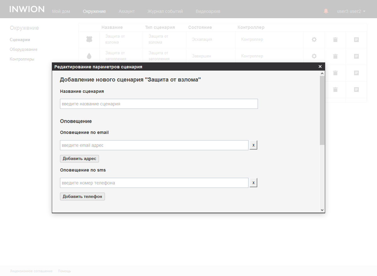 Допускается использование одного устройства в нескольких сценариях. Для отправки оповещений используется электронная почта и SMS. Конкретные адреса и номера телефонов указываются именно в свойствах сценария, а не через выбор профилей пользователей. В настоящее время отправка SMS осуществляется бесплатно, с начала следующего года планируется ввести оплату за эту операцию. Еще раз обратим внимание, что для отправки сообщений контроллеру требуется иметь связь с облачным сервисом. Заметим, что при потере соединения отправляются соответствующие сообщения по заданным в свойствах аккаунта координатам.