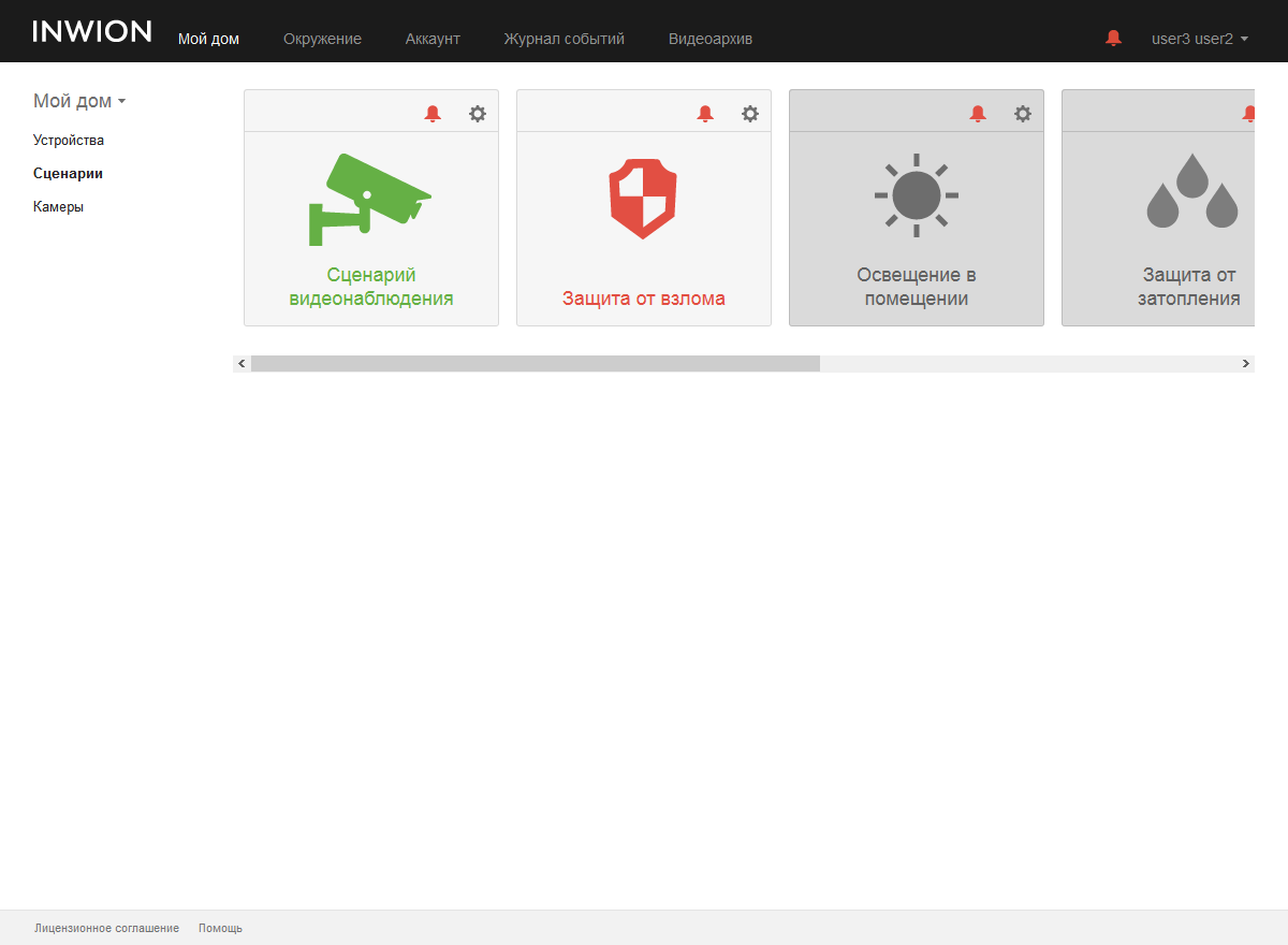 Общее управление системой осуществляется со страницы «Мой дом». Здесь каждый пользователь индивидуально может настроить внешний вид панели управления.