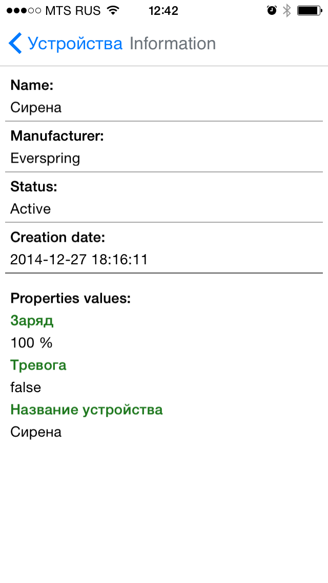 Все устройства представлены в общем списке с указанием производителя, статуса, уровня заряда батареи и другой информации. Отметим, что в системе предусмотрено и краткое описание для оборудования.