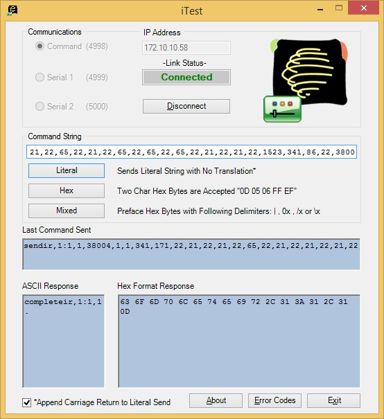 Заключительный этап — проверка работоспособности команд. Он также поможет, если в найденной таблице есть неоднозначное соответствие. Для этой задачи используем программу iTest.