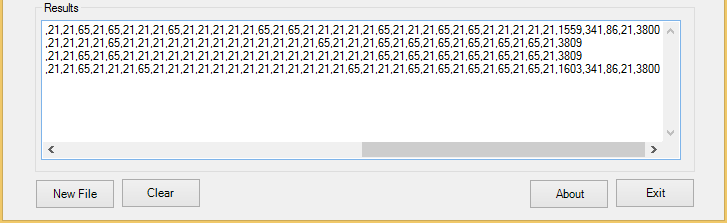 Теперь можно проанализировать результаты. Как мы видим, каждая команда, если не учитывать необходимой для самого адаптера части «sendir,1:1,1,37914,1,1,», имеет префикс «341,170,», далее идут тридцать две пары чисел и замыкает команду суффикс «22,1520,341,85,22,3700». В данном случае, нас будут интересовать как раз данные пары чисел. Они кодируют команду в двоичном формате, где «22,21,» обозначает «0», а «22,63,» обозначает «1», причем первым идет младший бит. Заметим, что из-за особенностей оцифровки некоторые числа могут немного отличаться, например «20» вместо «21» или «65» вместо «63». Но сути это не меняет и удобнее сразу привести все к одинаковому виду поиском и заменой.