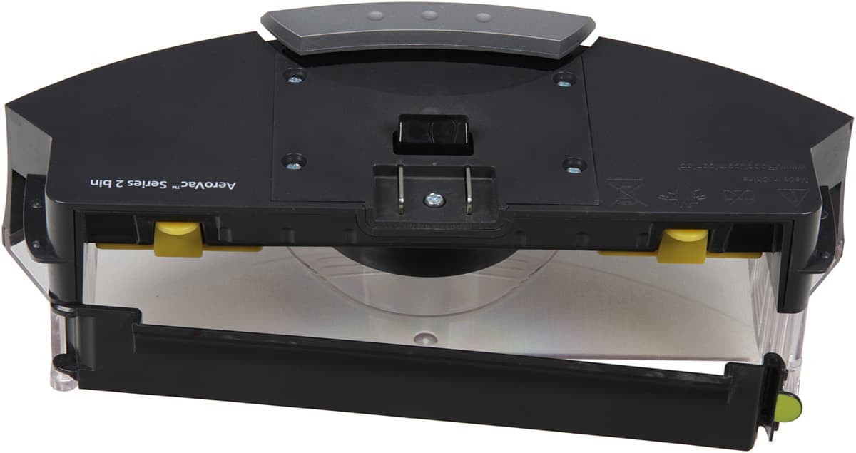 Воздушный вентилятор встроен в корпус пылесборника, поэтому сам пылесборник недопустимо мыть под водой. Отсоединять пылесборник относительно удобно и после некоторой тренировки это можно делать одной рукой, не сдвигая припаркованный на базе пылесос. Выдувается воздух через решетку на задней стенке пылесборника.