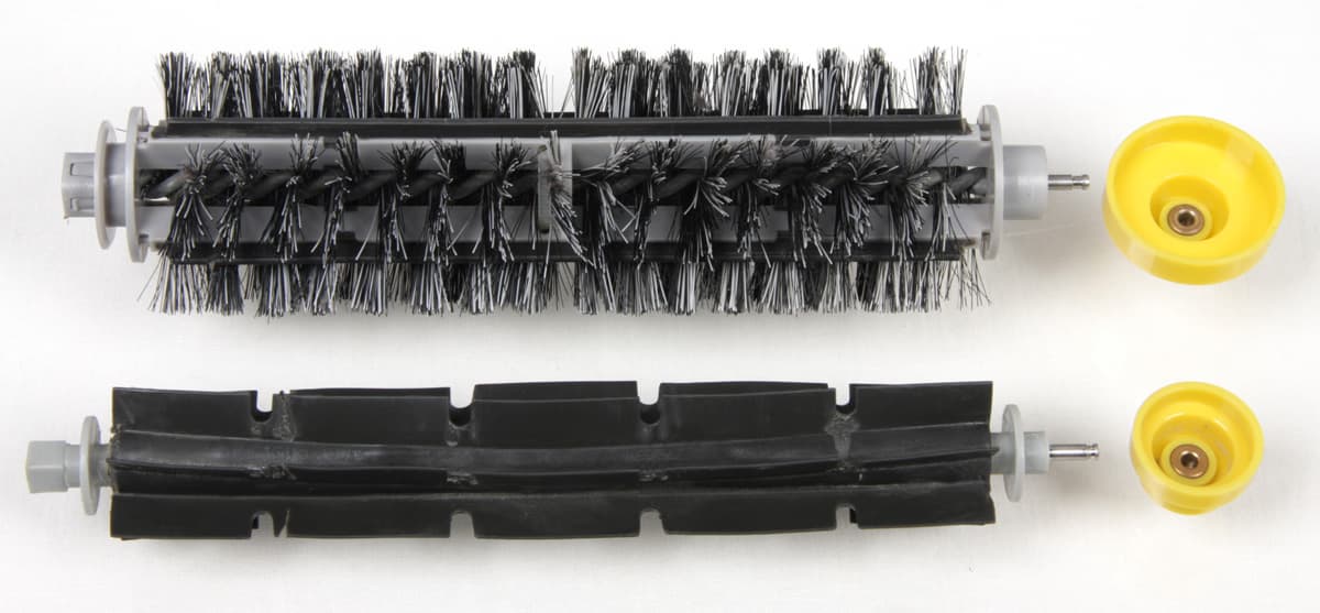 Пылесос комплектуется ИК-пультом ДУ и двумя навигационными устройствами. Кроме того, стандартный ЗИП включает в себя комплект запасных щеток, пару фильтров и два инструмента для очистки щеток.