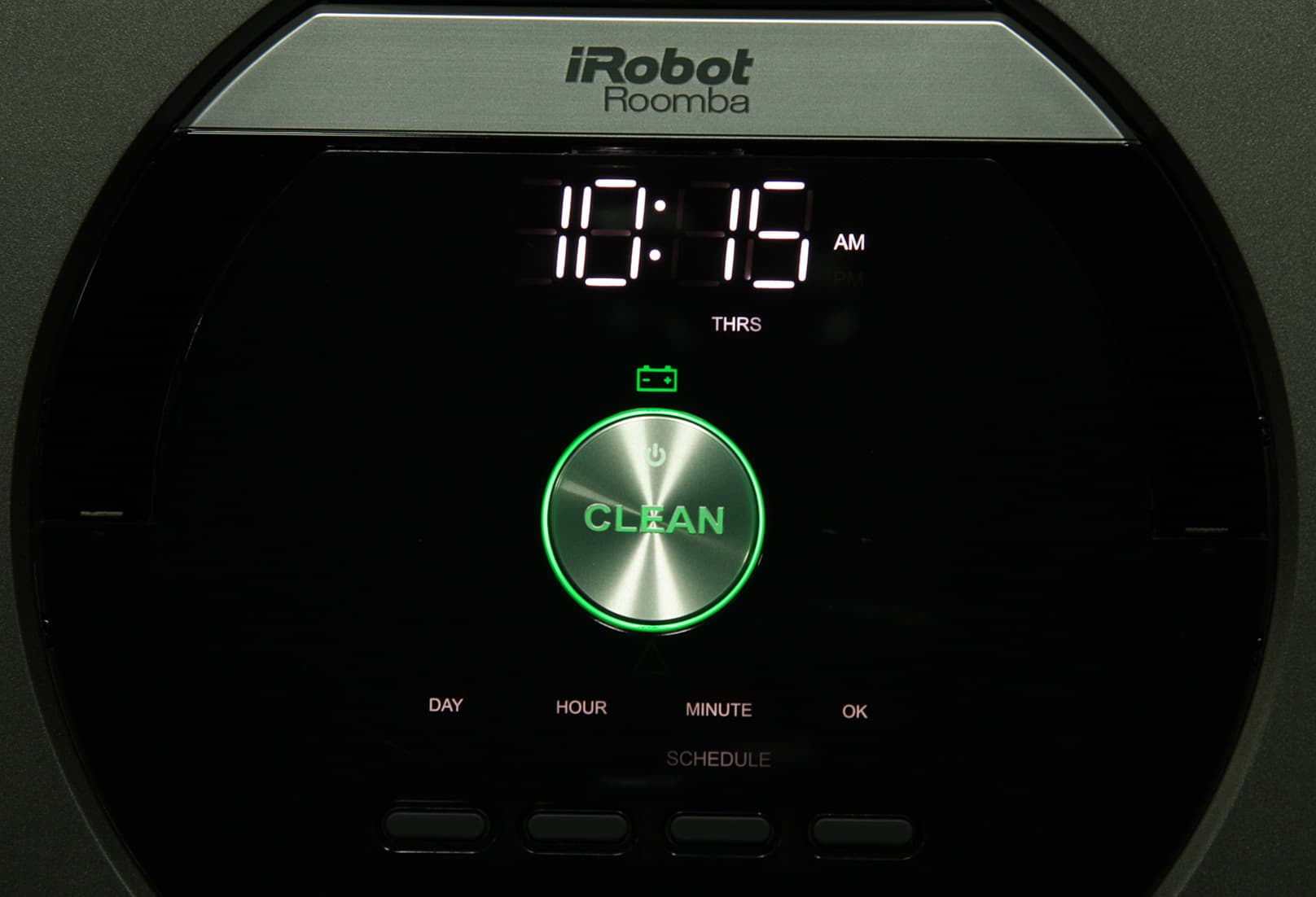 Запускаются режимы нажатием кнопок на корпусе пылесоса или на пульте ДУ: Clean — запуск в обычном режиме, SPOT — режим локальной очистки. Если робот долго находится в неактивном состоянии, то он переходит в режим ожидания, и первое нажатие на кнопку Clean пробуждает робота, и только второе активирует. Это не очень удобно. Нажатие на кнопку Dock (три точки на пульте) — включает режим принудительного возврата на базу. Запуск автоматического режима уборки можно назначить на определенное время в любой день недели, при этом время запуска устанавливается (или не устанавливается) своё на каждый из семи дней. Если расписание создано, то в заданное время пылесос съедет с базы, проведет уборку и вернется на базу.