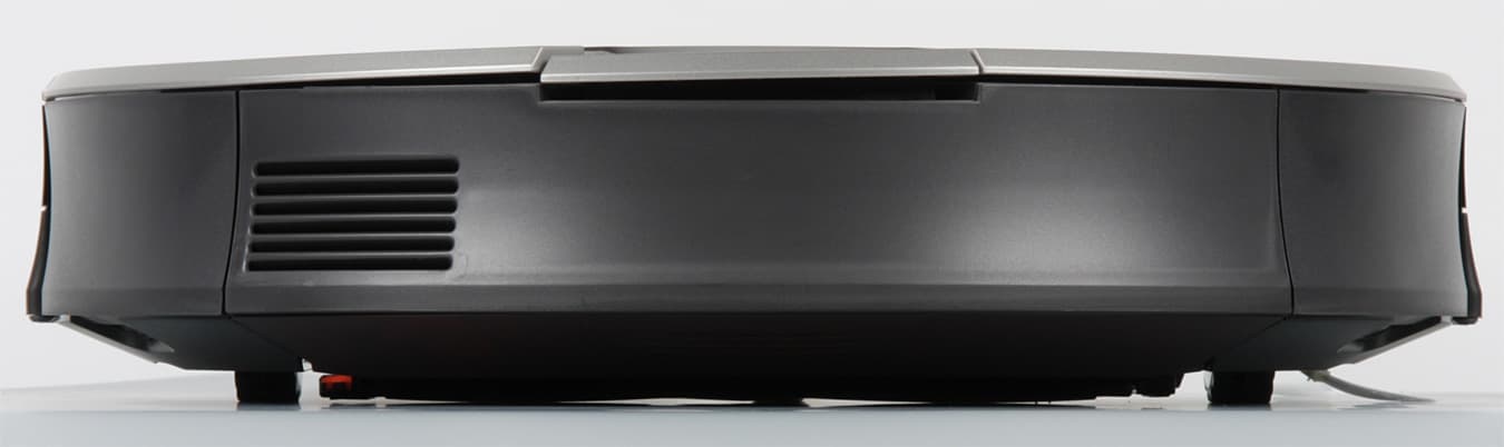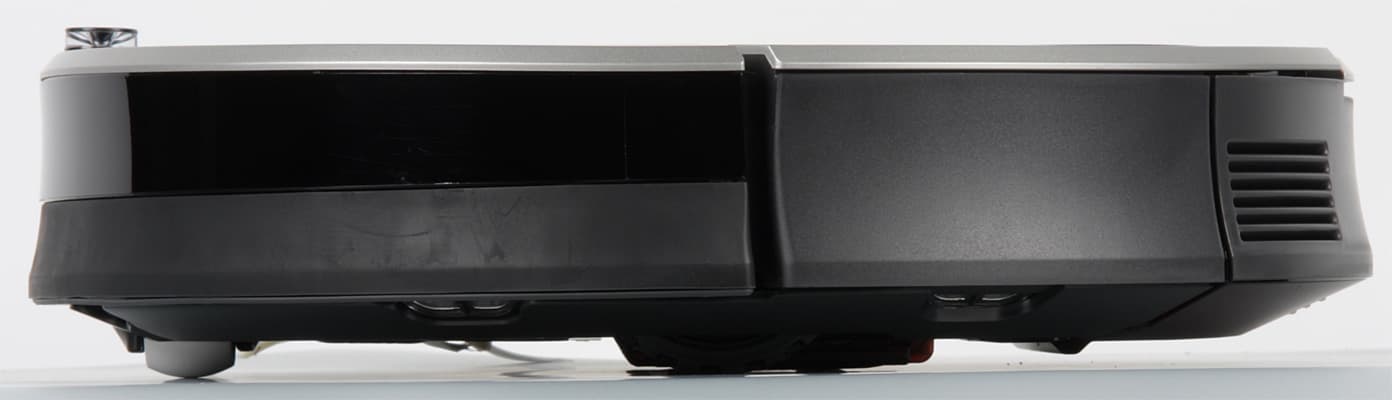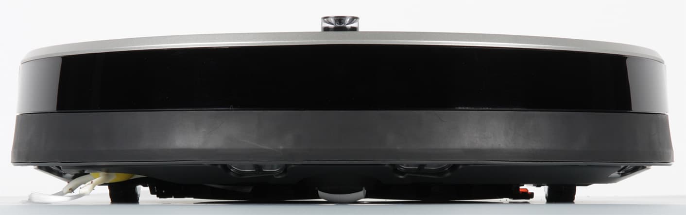Скос от края к днищу помогает преодолевать препятствия, а некоторая угловатость сверху снижает вероятность того, что пылесос будет застревать под препятствиями с небольшим просветом.