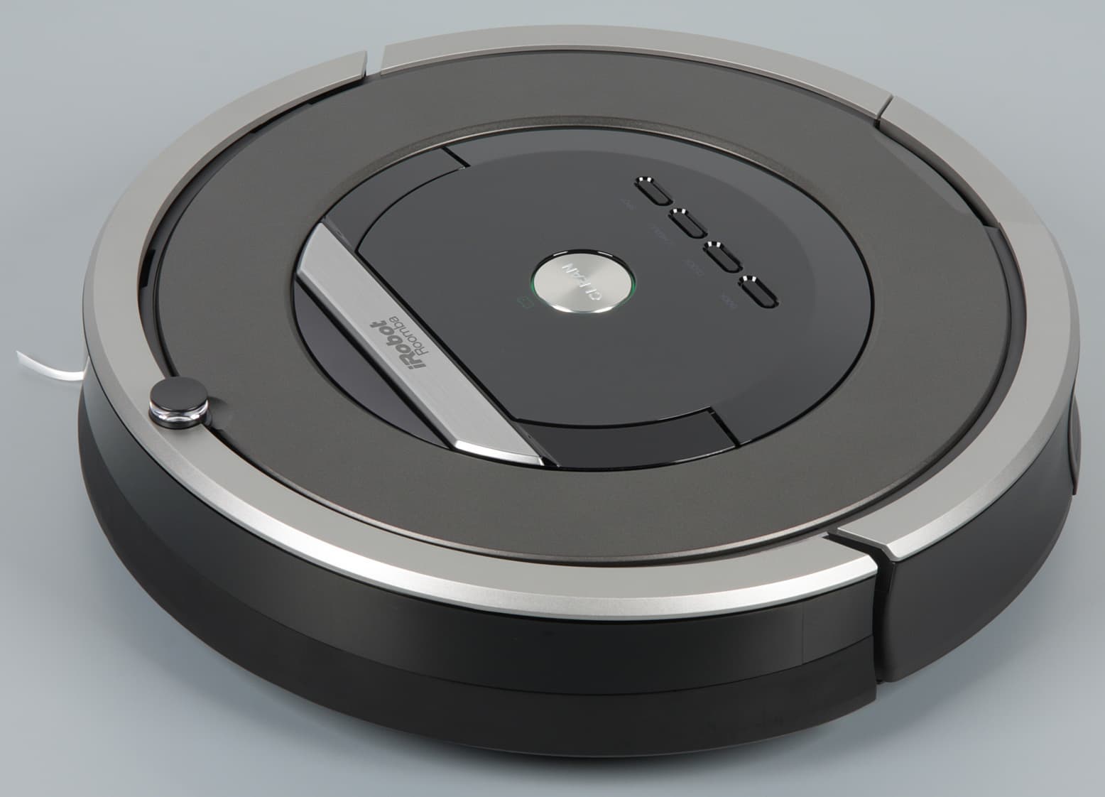 Это можно только приветствовать — нет внешнего БП и дополнительных проводов, которые постоянно мешались, и база стала немного тяжелее, что повысило ее устойчивость. И да, в 800-й серии убрали внешний разъем питания на корпусе робота, который позволял заряжать устройство, минуя базу, но и который вызывал много проблем. Штатный кабель питания относительно короткий — 1 м, но, при необходимости, найти ему замену труда не составит, так как разъем на базе представляет собой стандартную «восьмерку».