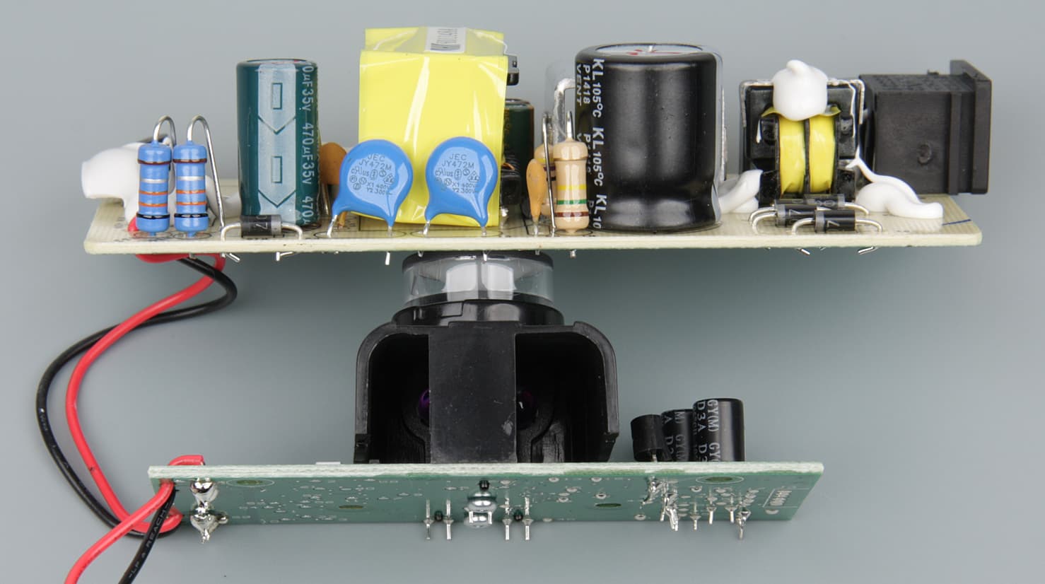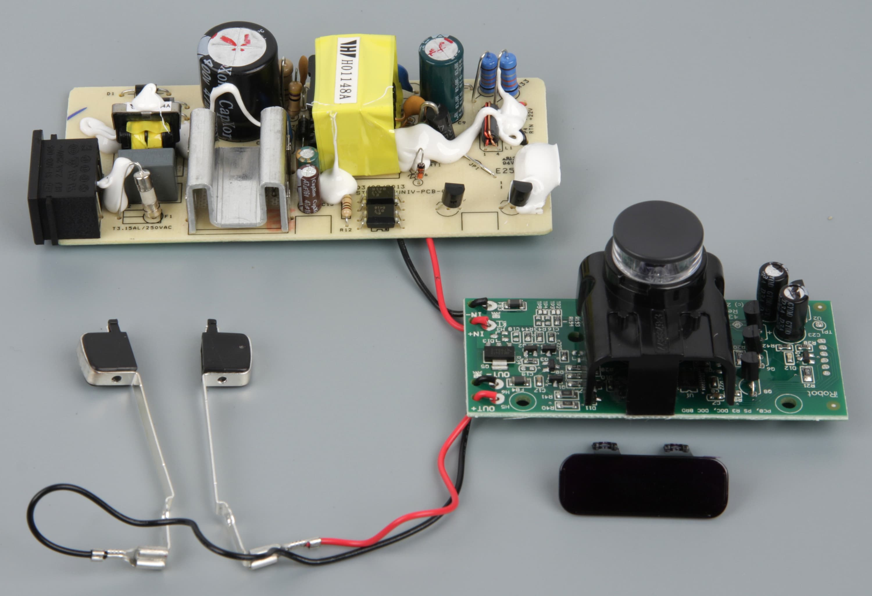 Электронные компоненты базы распределены по двум блокам — собственно блок питания и плата контроля/управления.