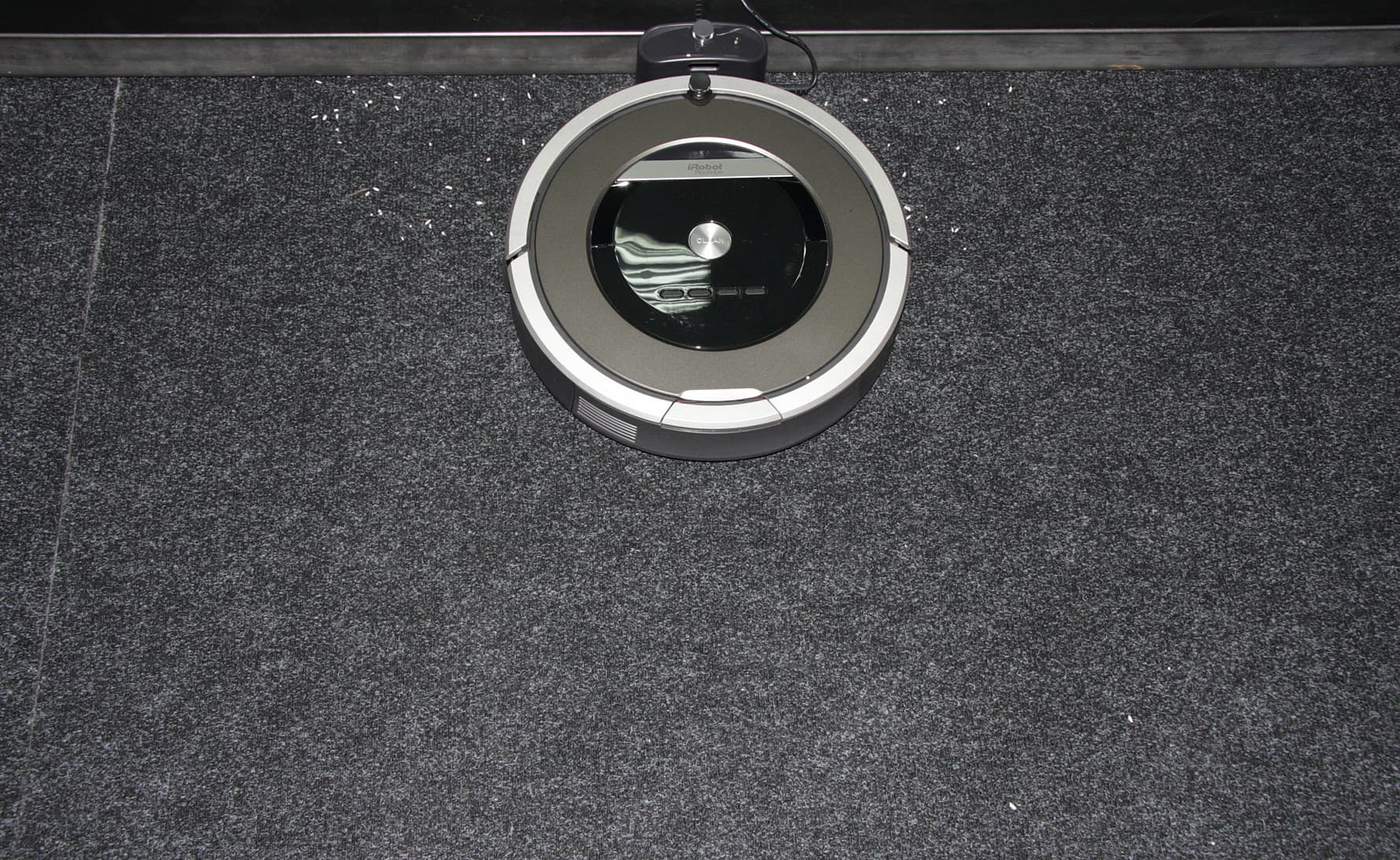 Для сравнения, уровень шума в этих условиях обычного (не самого тихого) пылесоса равен примерно 76,5 дБА. Робот работает относительно громко (смотреть кино в комнате, где он убирает, не очень приятно), но несколько тише, чем предыдущие модели серий 500/600/700. Кажется, что в 870 меньше —механического— жужжания щеточного узла и вентилятора. В целом звук не является неприятным. Запускать в ночное время его можно, но только в соседнем от спальной комнаты помещении, и желательно за дверями с хорошей звукоизоляцией.