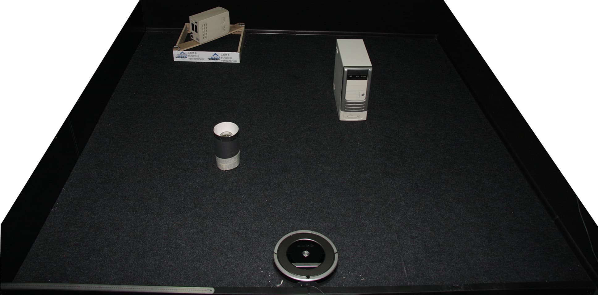 Дополнительно были испытаны устройства ограничения — виртуальные стены. Для этого оба устройства мы расположили примерно в центре тестового участка (без препятствий) и выгородили с их помощью один угол. Что получилось, демонстрирует видео ниже (частично ускоренное в 10 раз):