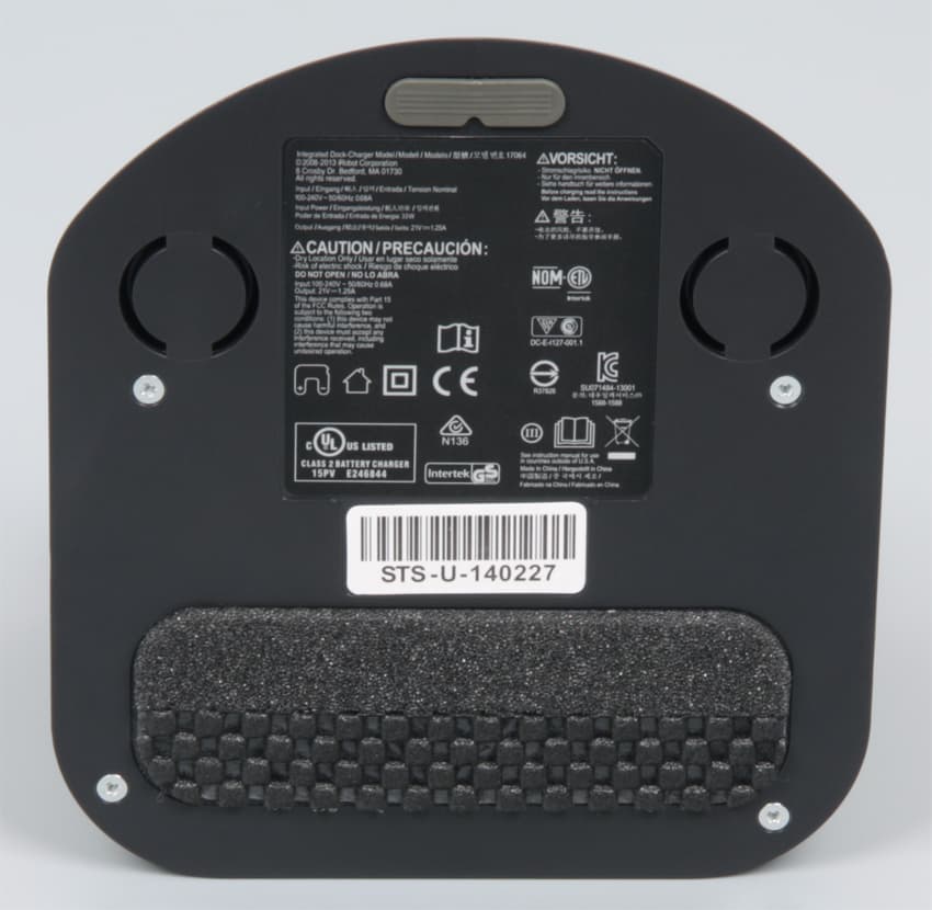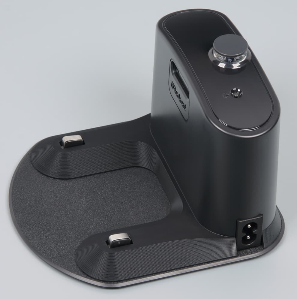 Это можно только приветствовать — нет внешнего БП и дополнительных проводов, которые постоянно мешались, и база стала немного тяжелее, что повысило ее устойчивость. И да, в 800-й убрали внешний разъем питания на корпусе робота, который позволял заряжать устройство, минуя базу, но и который вызывал много проблем. Штатный кабель питания относительно короткий — 93 см, но, при необходимости, найти ему замену труда не составит, так как разъем на базе представляет собой стандартную «восьмерку». Снизу на основание базы приклеены небольшая резиновая площадка и составная площадка побольше из поролона и какого-то другого пористого материала в шашечку.