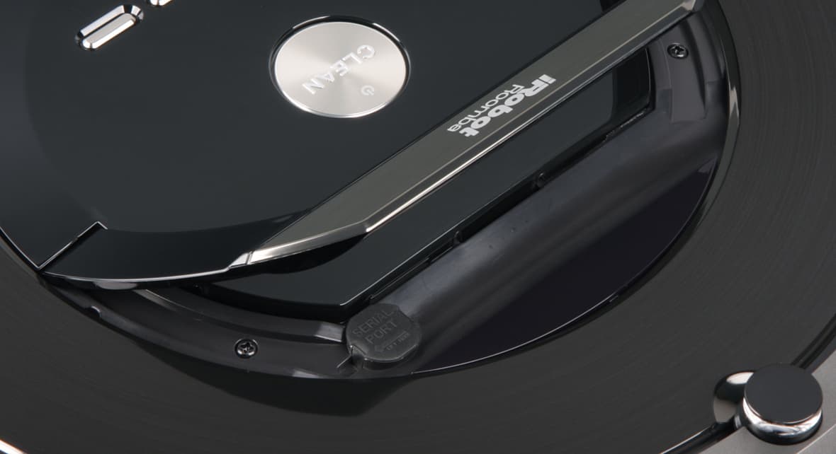 Тут есть небольшой эргономический просчет — ручка приподнимается за переднюю часть, но углубление для захвата пальцами очень мелкое. Под ручкой спрятан прикрытый резиновой заглушкой сервисный разъем (используется в частности для обновления программного обеспечения). Нижняя часть бампера окантована резиновой «юбочкой», предохраняющей мебель от царапин.