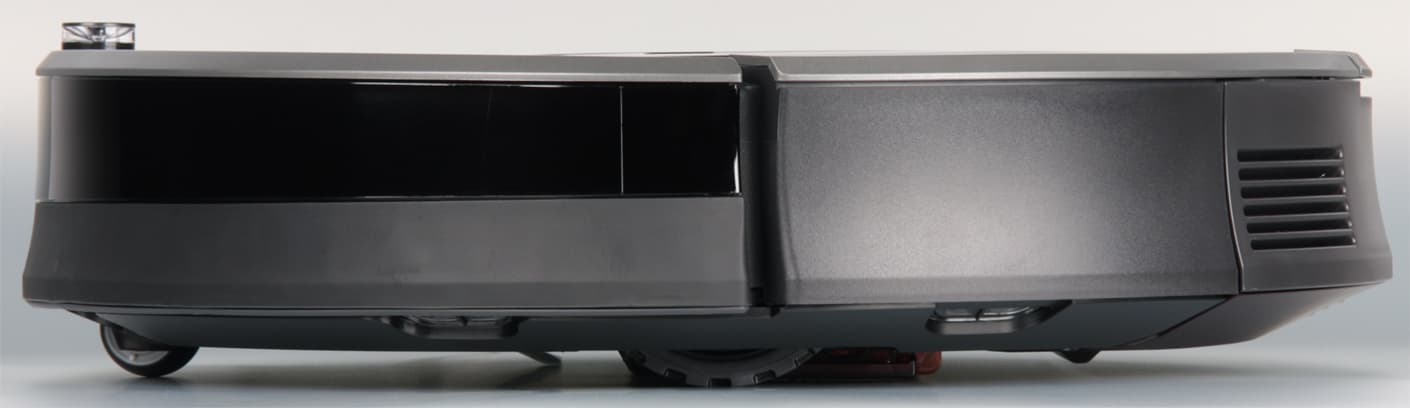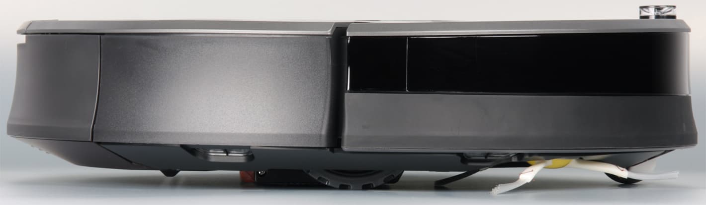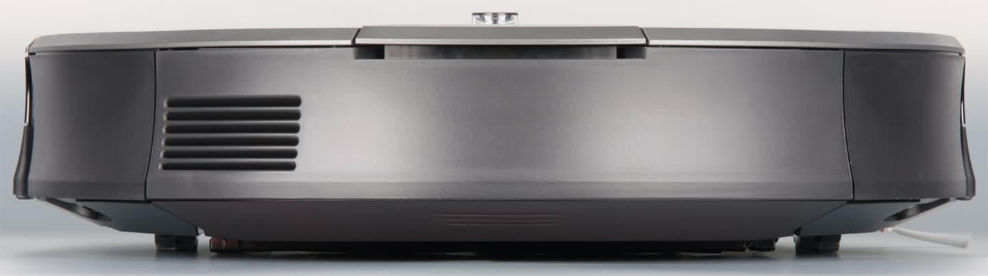 Скос от края к днищу помогает преодолевать препятствия, а некоторая угловатость сверху снижает вероятность того, что пылесос будет застревать под препятствиями с небольшим просветом.