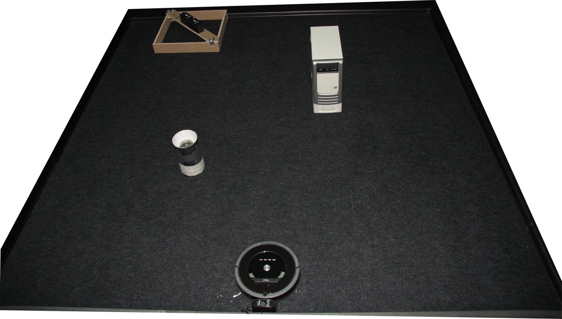 При этом не было случая, чтобы пылесос сдвинул базу после начала уборки, и робот всегда заезжал на базу с первого раза. Можно предположить, что робот как-то оценивает убираемую площадь, например, исходя из среднего расстояния от препятствия до препятствия, и на основании этого определяет требуемое время уборки. В нашем случае это время можно считать близким к оптимальному, так как дальнейшее увеличение времени уборки (свыше 20-30 минут) уже не приводит к существенному росту процента убираемого мусора. Робот не обладает способностью решать навигационные задачи дальнего порядка, впрочем, принимать решения относительно следующего направления движения, а также выбираться из сложных мест и выпутываться из проводов роботу помогают ИК-датчики приближения, механический бампер, отслеживание вращения ведущих колес и щеток, отслеживание перемещения с помощью оптического датчика, регистрирующего вращение подруливающего ролика (не зря он наполовину черный а на половину белый).