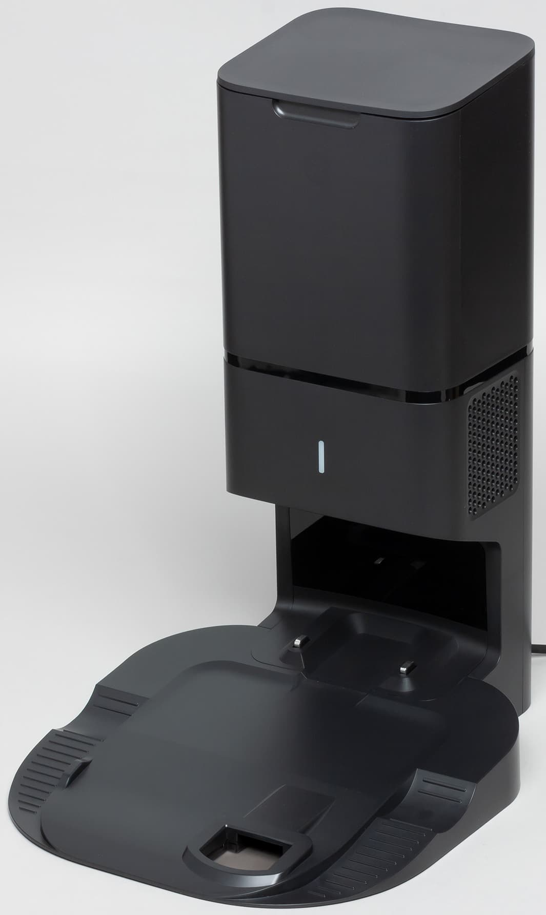 База, на которой пылесос заряжается, имеет еще одну полезную функцию — она автоматически опустошает пылесборник робота.