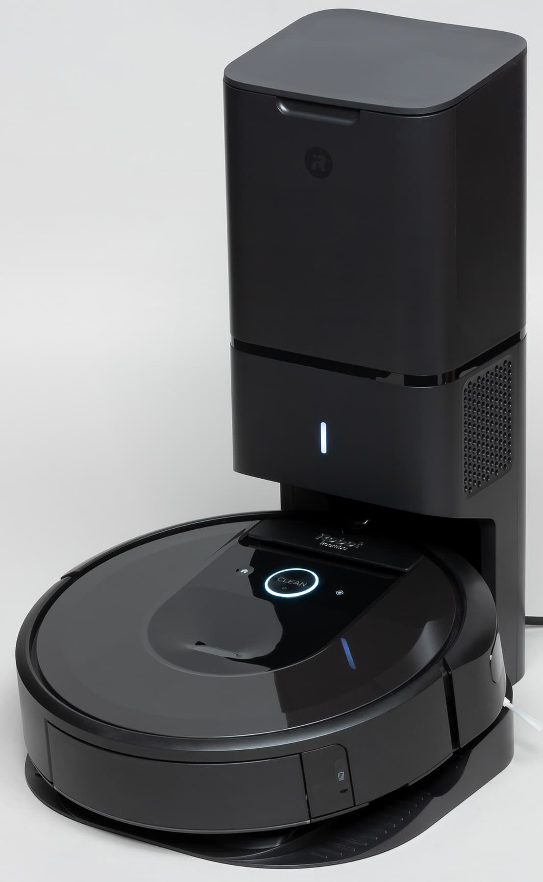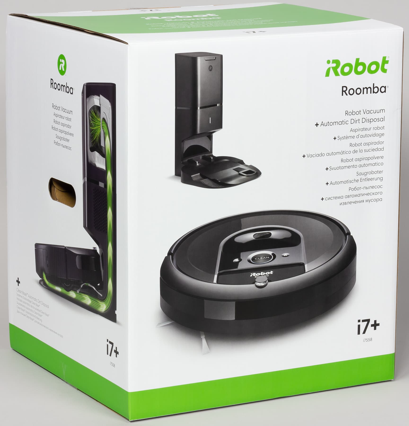 Компания iRobot выпустила два варианта роботов Roomba серии i: модель i7 в комплекте с простой базой, обеспечивающей только зарядку робота, и с модель i7+ уже с большой базой, автоматически опустошающей пылесборник робота. У нас на тестировании, как легко заметить, был второй вариант. В принципе, в продаже есть отдельно сама база iRobot Clean Base Automatic Dirt Disposal в комплекте с пылесборником от i7+. Купив такой комплект, владелец простой модели i7 сможет улучшить ее до настоящей i7+.
