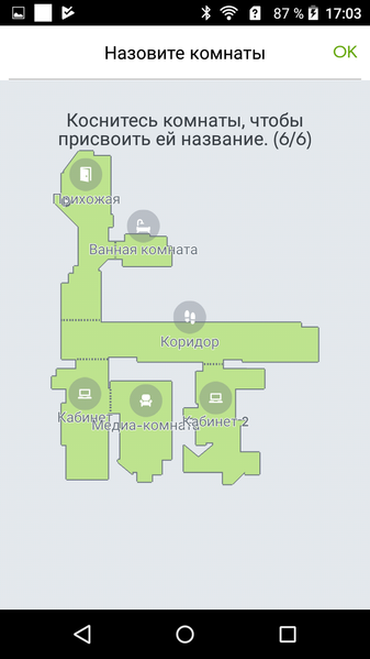 После такой уборки за два прохода робот завершил обучение и даже поделил помещение на комнаты, частично угадав реальные границы: