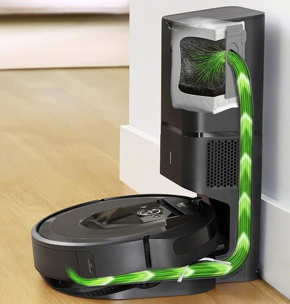 Робот-пылесос iRobot Roomba i7+ отличается продвинутой покомнатной навигацией: робот строит карту помещения и даже делит его на комнаты в автоматическом режиме. При этом пользователь может отредактировать карту — внести правки в разделение на комнаты и присвоить комнатам соответствующие имена. После этого робота можно отправить убирать выбранные комнаты непосредственно в данный момент или по расписанию, составленному на неделю. Впрочем не все функции, связанные с картой, реализованы. Например, на карте не показывается, где в данный момент находится робот, нельзя отправить робота выполнить локальную уборку в нужной точке, не получится создать запретные зоны — придется использовать виртуальную стену. Главным преимуществом данной комплектации является система автоматического опустошения пылесборника, что значительно облегчает обслуживание робота, хотя и может привести к тому, что пользователь будет забывать вовремя чистить этого помощника по дому.