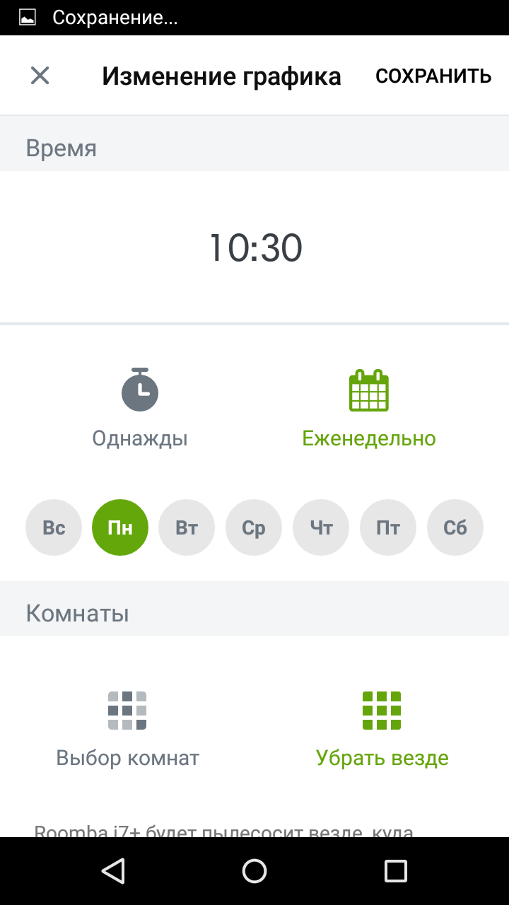 - Режим уборки по расписанию с расширенными настройками