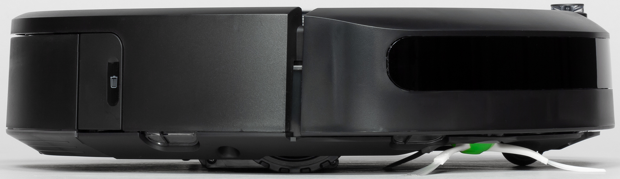 Такое может происходить и во время реального использования робота, при этом далеко не факт, что повторное автоматическое опустошение в случае настоящего мусора устранит щель. Подобная щель снижает эффективность уборки из-за паразитного подсоса воздуха. Очевидно, что автоматическое опустошение пылесборника не исключает периодический осмотр робота и его чистку — только так можно сохранить высокую эффективность уборки и снизить износ робота. Отметим, что вручную чистить пылесборник не очень удобно из-за сложной конфигурации отсека для мусора.