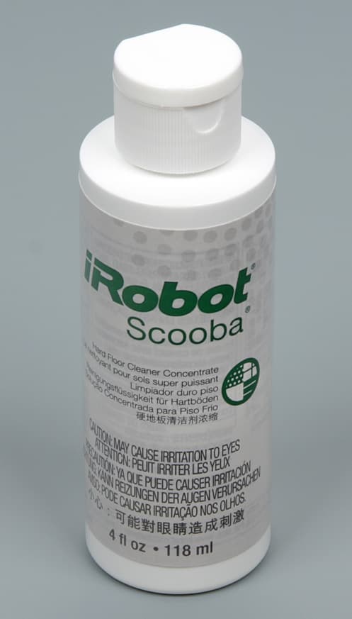 Его можно купить в фасовке по 473 мл, чего хватает примерно на 32 заправки резервуара. Также можно использовать просто холодную или слегка теплую (ни в коем случае не горячую) воду из-под крана (дистиллированная не подойдет — датчики робота ее не определяют). Раствор уксуса в случае Scooba 450 использовать нельзя!