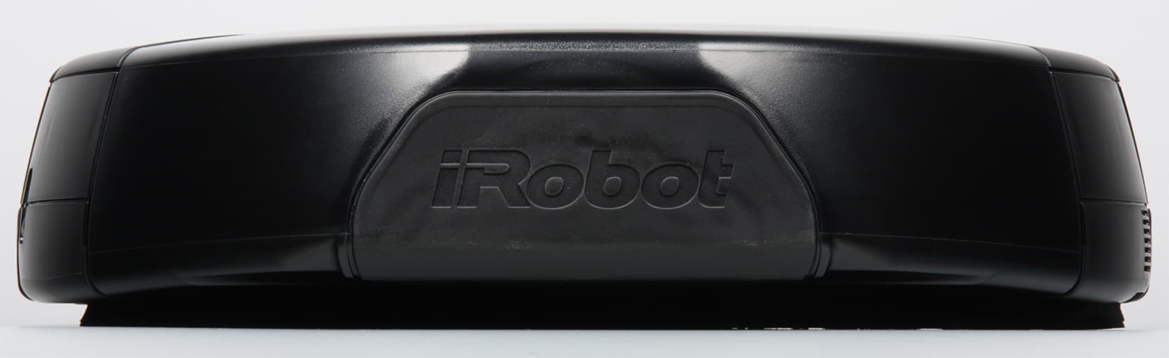 Фронтальная поверхность переднего бампера разделена на две половины. Верхняя — из пластика с зеркально-гладкой поверхностью и непрозрачного с виду, но прозрачного для ИК света, что делает возможной работу ИК-датчиков приближения к препятствию. Нижняя — с накладкой из упругого пластика (видимо, мягкого ПВХ), предохраняющая предметы мебели и стены от воздействия робота. Сам бампер подвешен на шарнирном креплении, а его смещение отслеживается датчиками (видимо, оптопарами), что позволяет роботу определять столкновение с предметами.