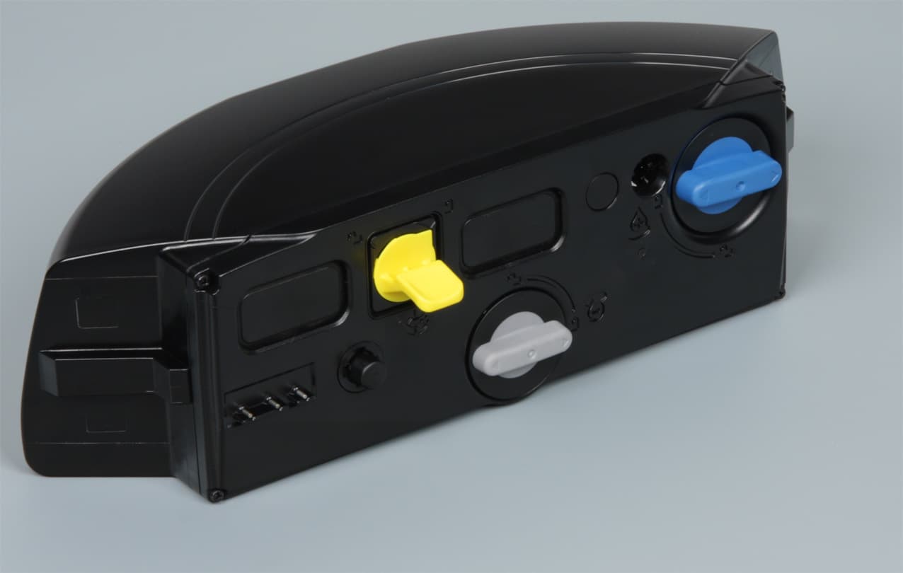 Бак робота имеет два отделения, закрытые заглушками с воротками разных цветов.