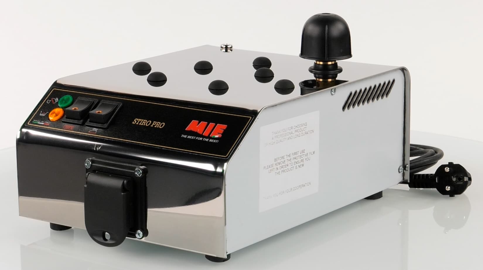 В отдельную категорию вынесем бытовые парогенераторы, допускающие подключение утюга. Такой прибор имеет резервуар впечатляющих размеров и может подавать пар в течении длительного времени. Используется такой парогенератор для уборки помещений, а также при проведении ремонтных работ. Утюг, подключаемые с помощью специального шланга, в данном случае выполняет роль дополнительного аксессуара и зачастую не входят в комплект. Такой парогенератор, как правило, предназначен для горизонтальной глажки, но может работать и в вертикальном положении. Время работы прибора может достигать часа и более.