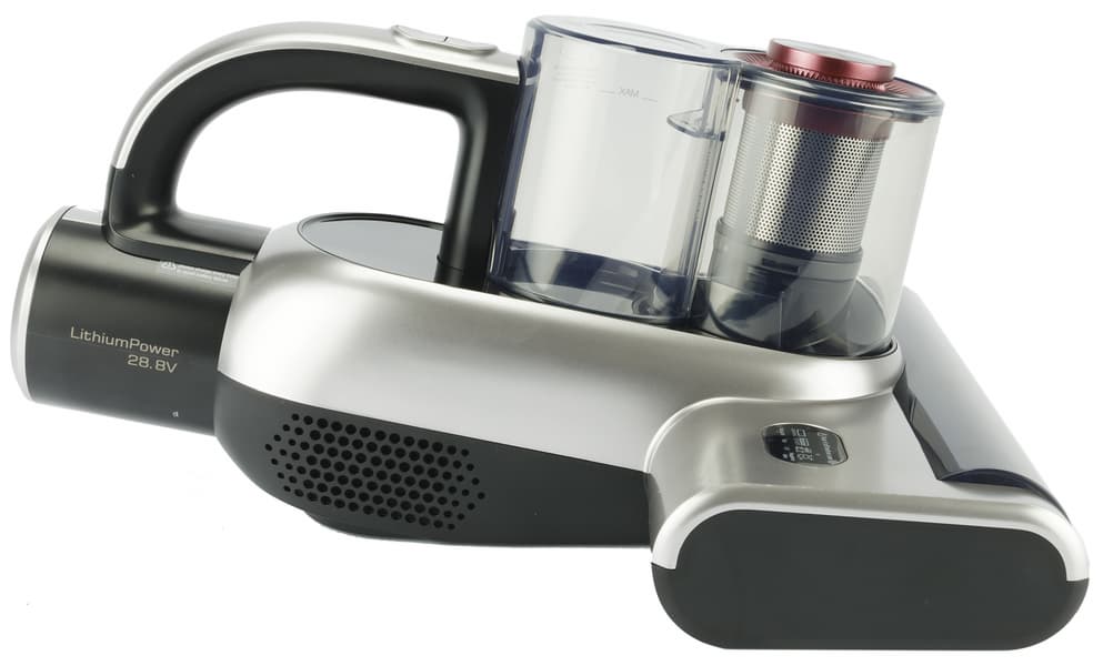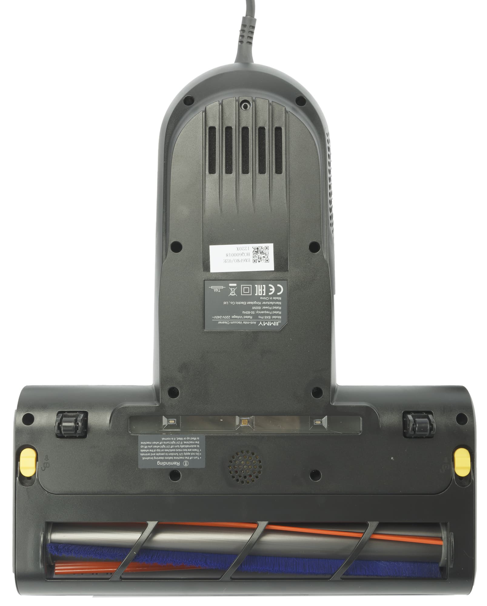 Как и у большинства специализированных пылесосов, предназначенных для ухода за матрасами, у Jimmy BX6 Pro моноблочная схема: моторная часть и насадка представляют единое целое. В передней части располагается роторная щетка, приводимая в действие электромотором, а основной двигатель находится в центре корпуса. На правом боку — решетка, через которую выпускается воздух.