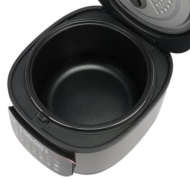 Чаша выполнена из металла с антипригарным покрытием Daikin, что позволяет готовить с минимумом масла или даже без него. Она легко очищается от загрязнений и не впитывает запахи.