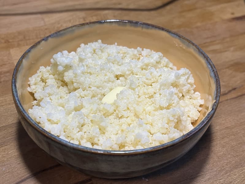 Вовремя мы не проснулись, но когда встали — первым делом почувствовали приятный запах готовой еды. Функция автоподогрева заботливо поддержала температуру блюда, поэтому, открыв крышку, мы лицезрели горячую ароматную пшенную кашу.