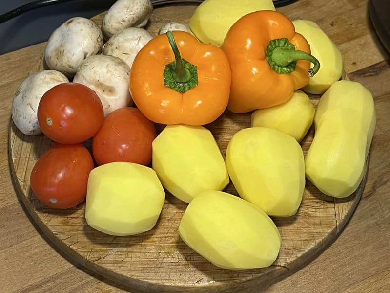 Чтобы оценить качество тушения большого объема продуктов, мы взялись за приготовление рагу.