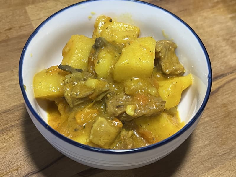 Рагу получилось отличным — мясо распадалось на волокна и было сочным, картофель и овощи впитали в себя все специи, а соус не давал блюду остыть в тарелке.