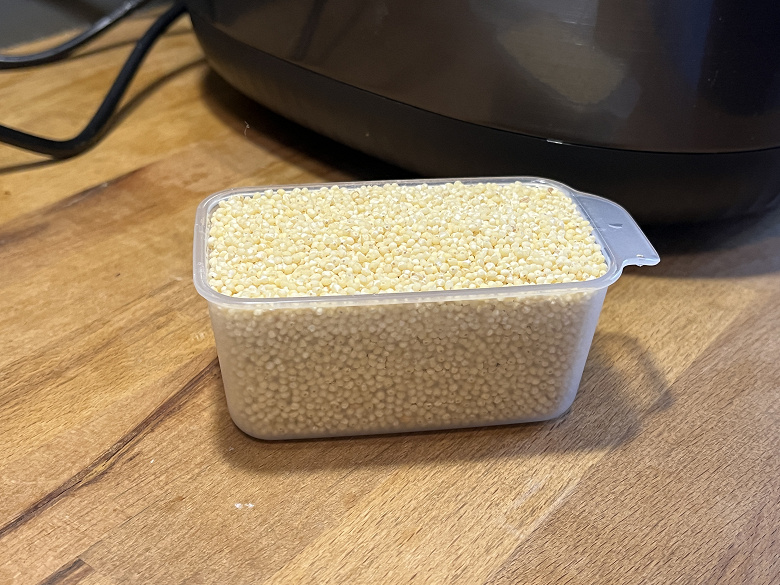 Мерный стаканчик в комплекте оказался удобным и помог отмерить необходимое количество крупы.