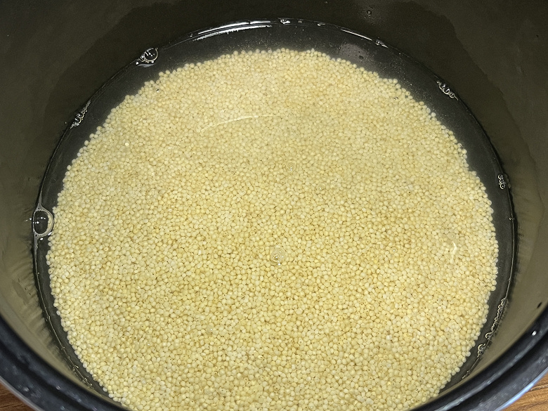 Первым делом мы решили воплотить в жизнь рецепт для тех, кто опаздывает с самого утра и не успевает позавтракать: пшенную кашу, ингредиенты для которой закладываются с вечера.