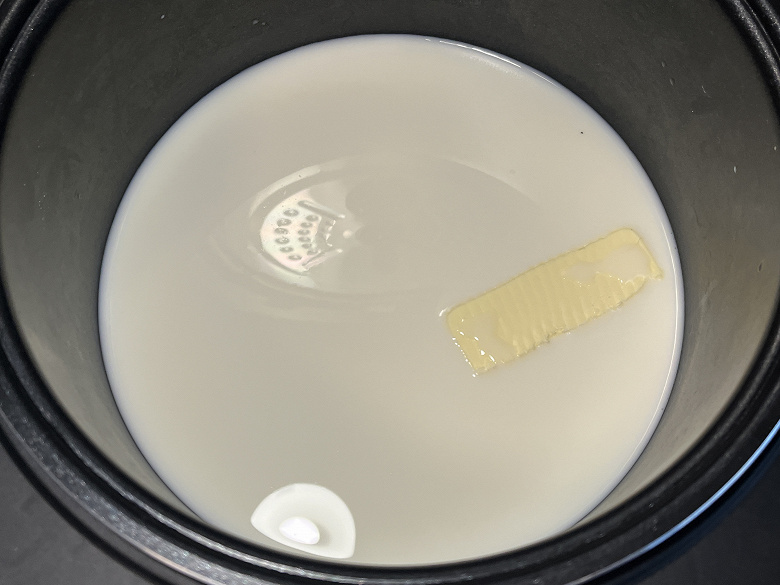Для этих целей мы подготовили ультрапастеризованное молоко, которому не страшно провести ночь при комнатной температуре, пшено, немного воды, 1,5 столовых ложки сахара, чайную ложку соли и сливочное масло.