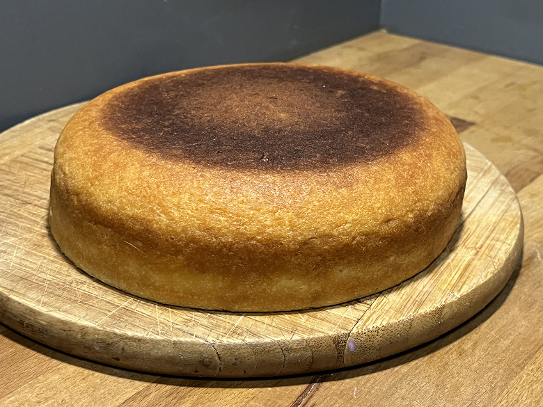 Мы вынули чашу и перевернули ее на разделочную доску. Выпечка получилось аккуратной и румяной.