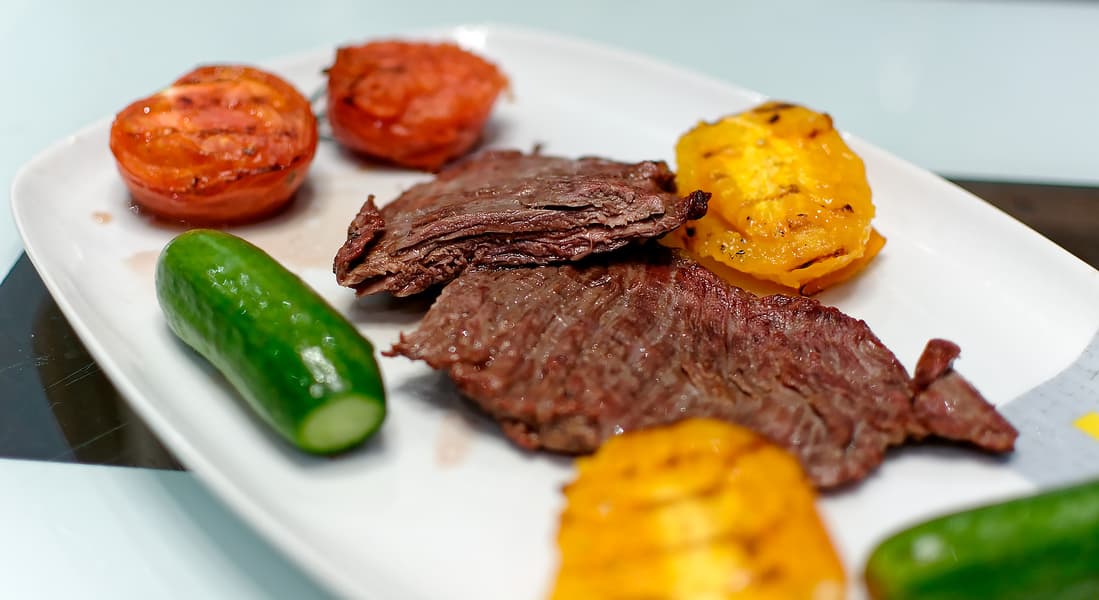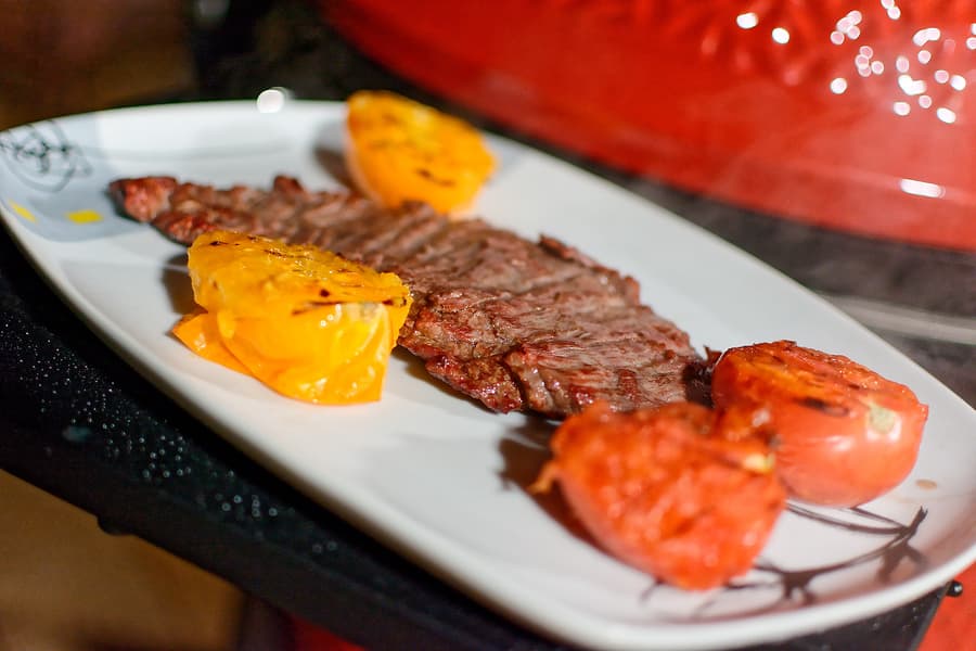 - стейк из диафрагмы с томатами-гриль;