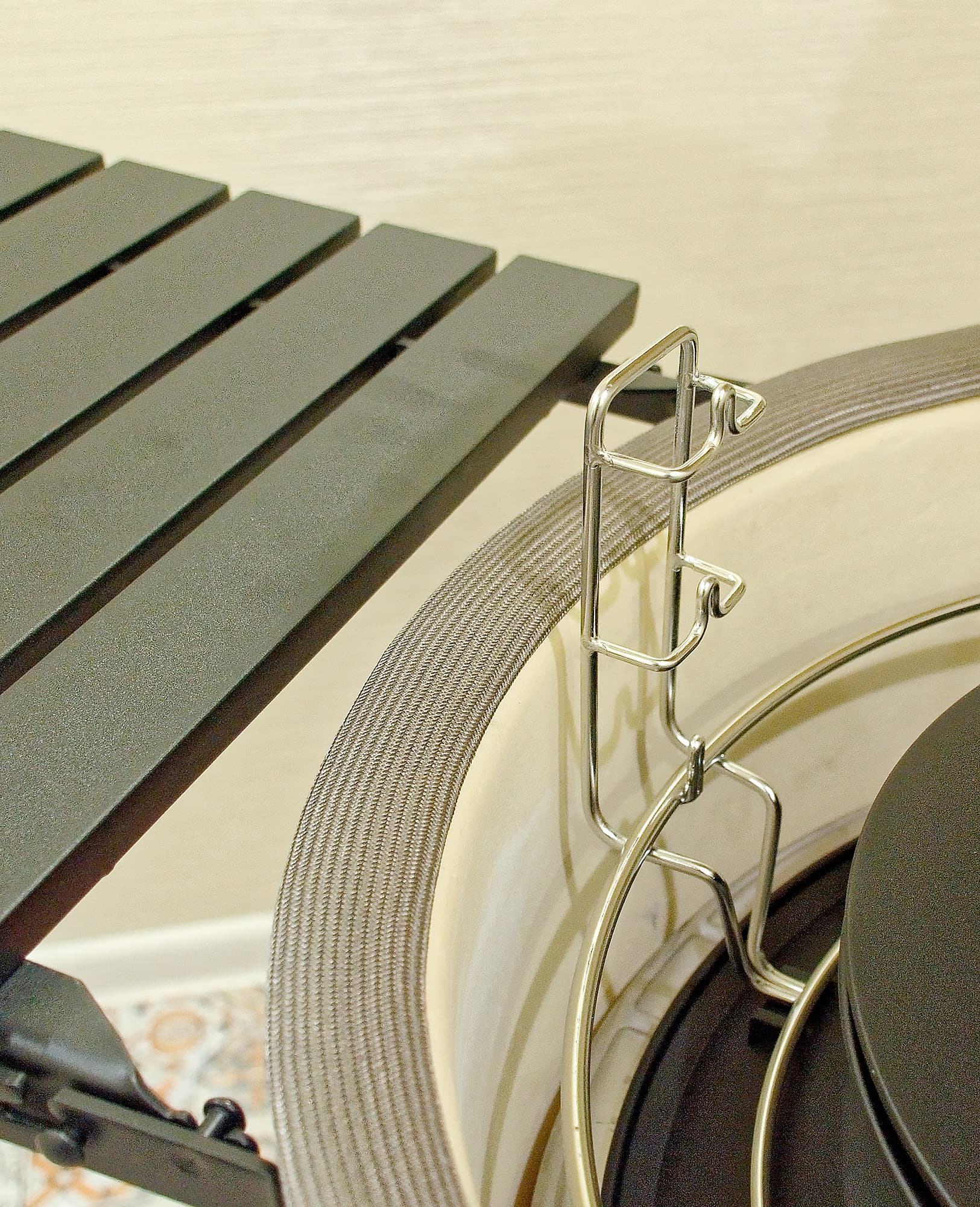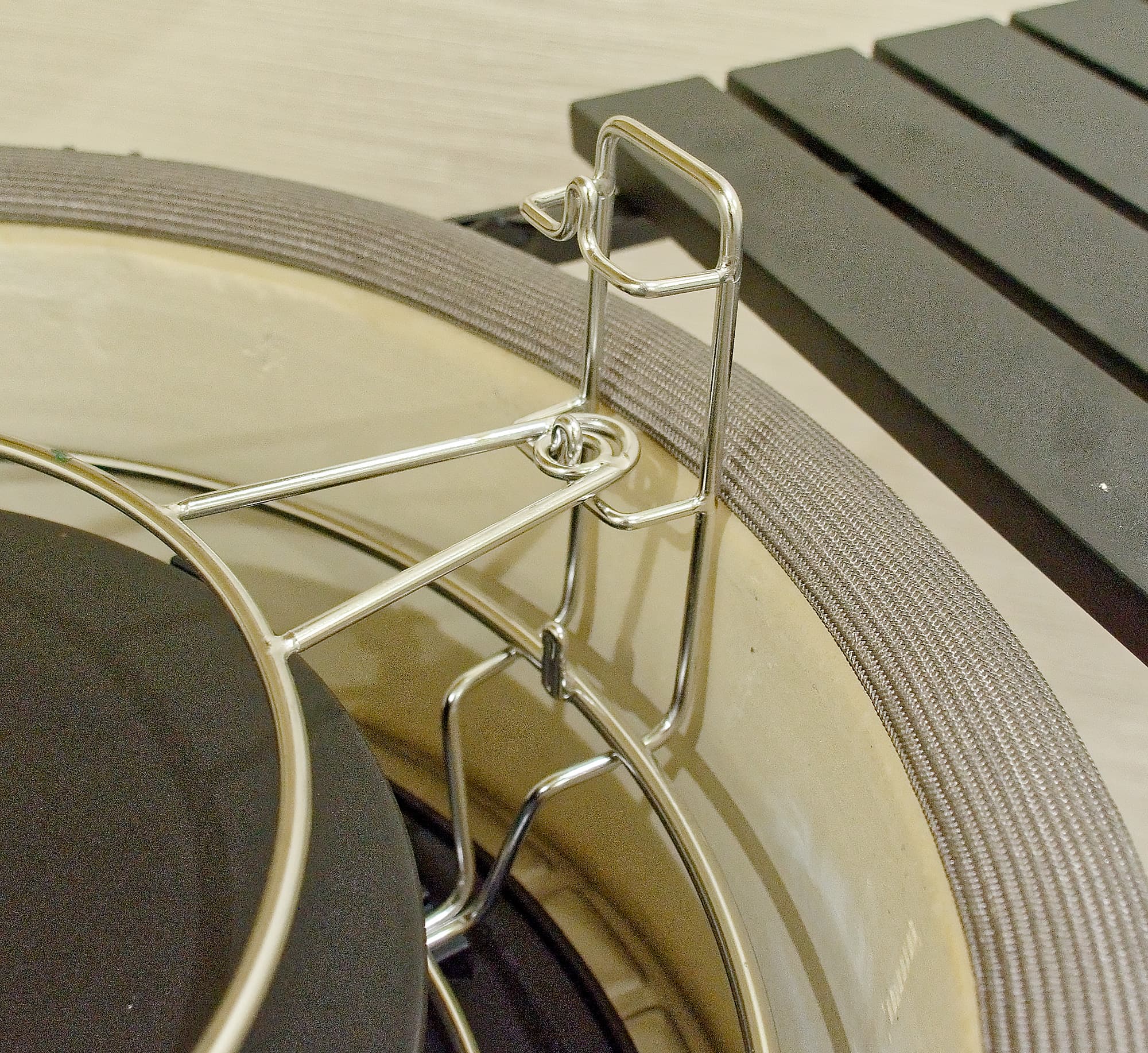- Комплектная ручка для держания решетки, несмотря на хлипкий внешний вид, является наилучшим и самым удобным инструментом для снятия решетки с гриля и установки ее на гриль.