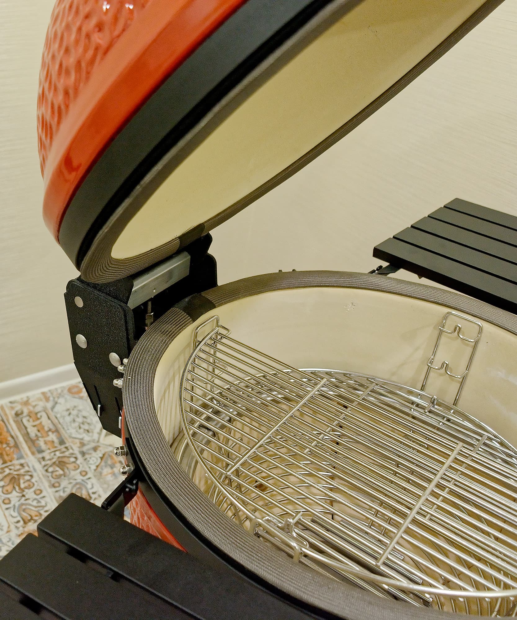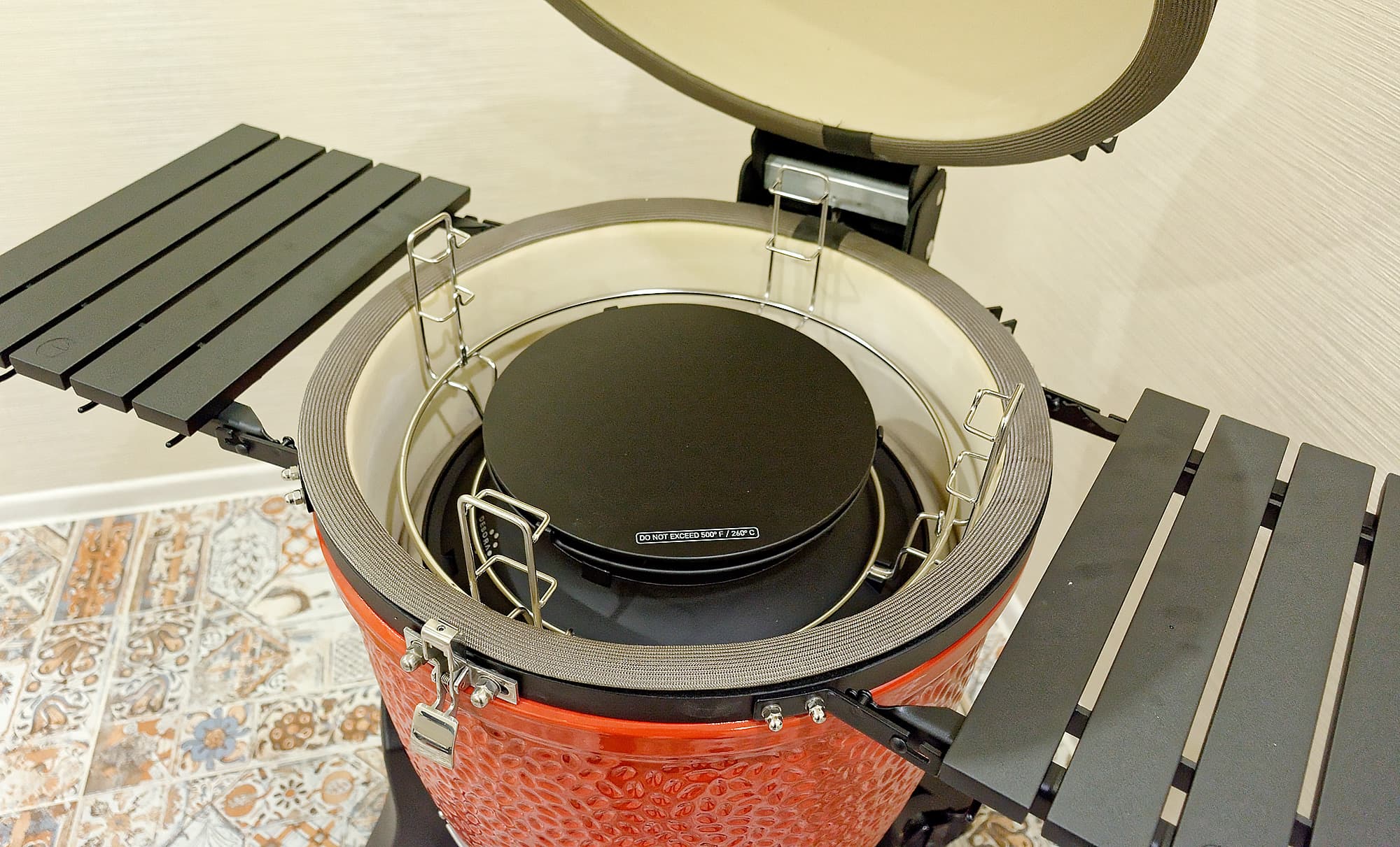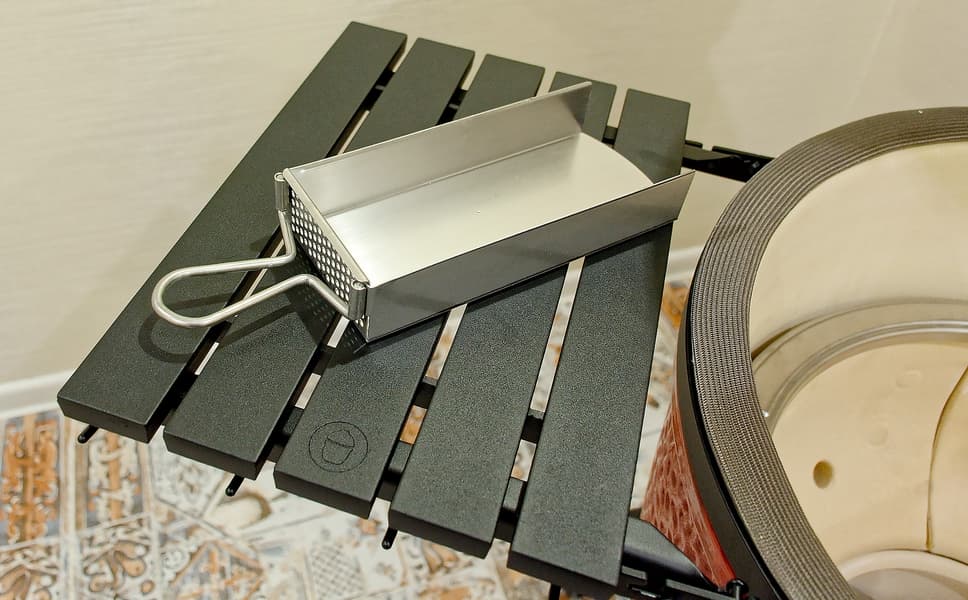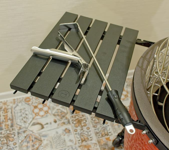 В завершение добавим, что откидные столики у Kamado Joe Classic III полностью алюминиевые, поэтому не боятся даже сильного нагрева.