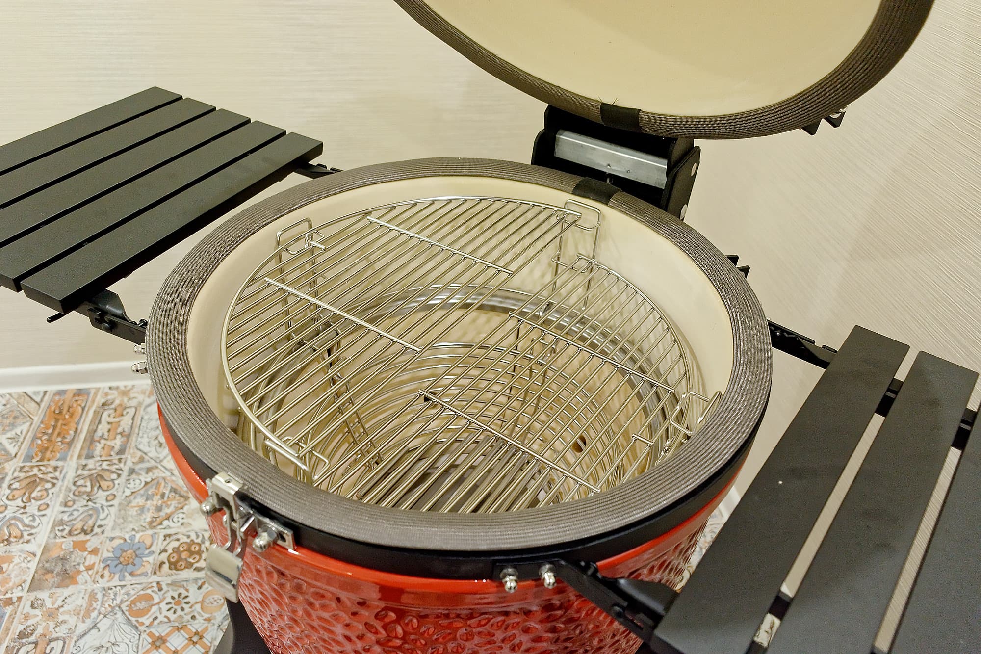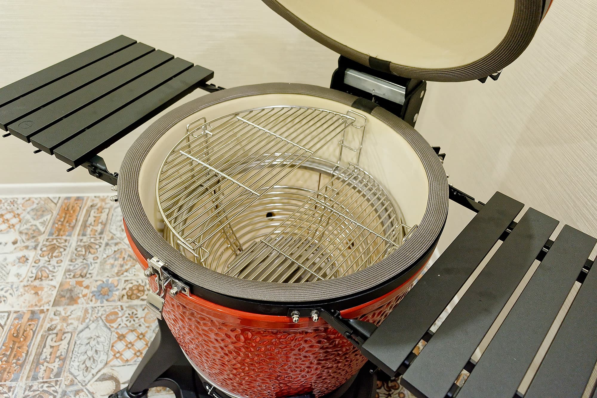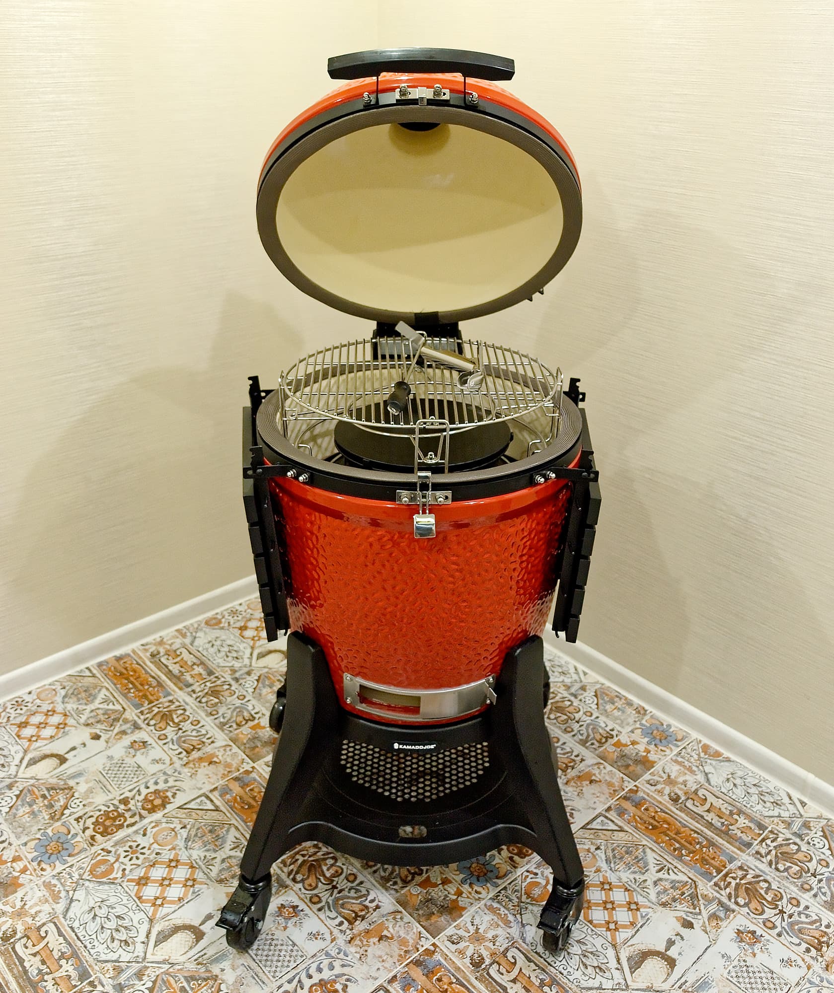 В завершение добавим, что откидные столики у Kamado Joe Classic III полностью алюминиевые, поэтому не боятся даже сильного нагрева.