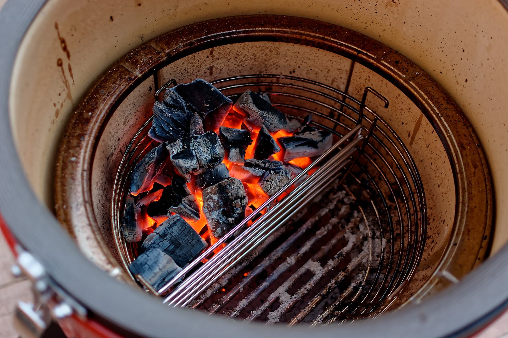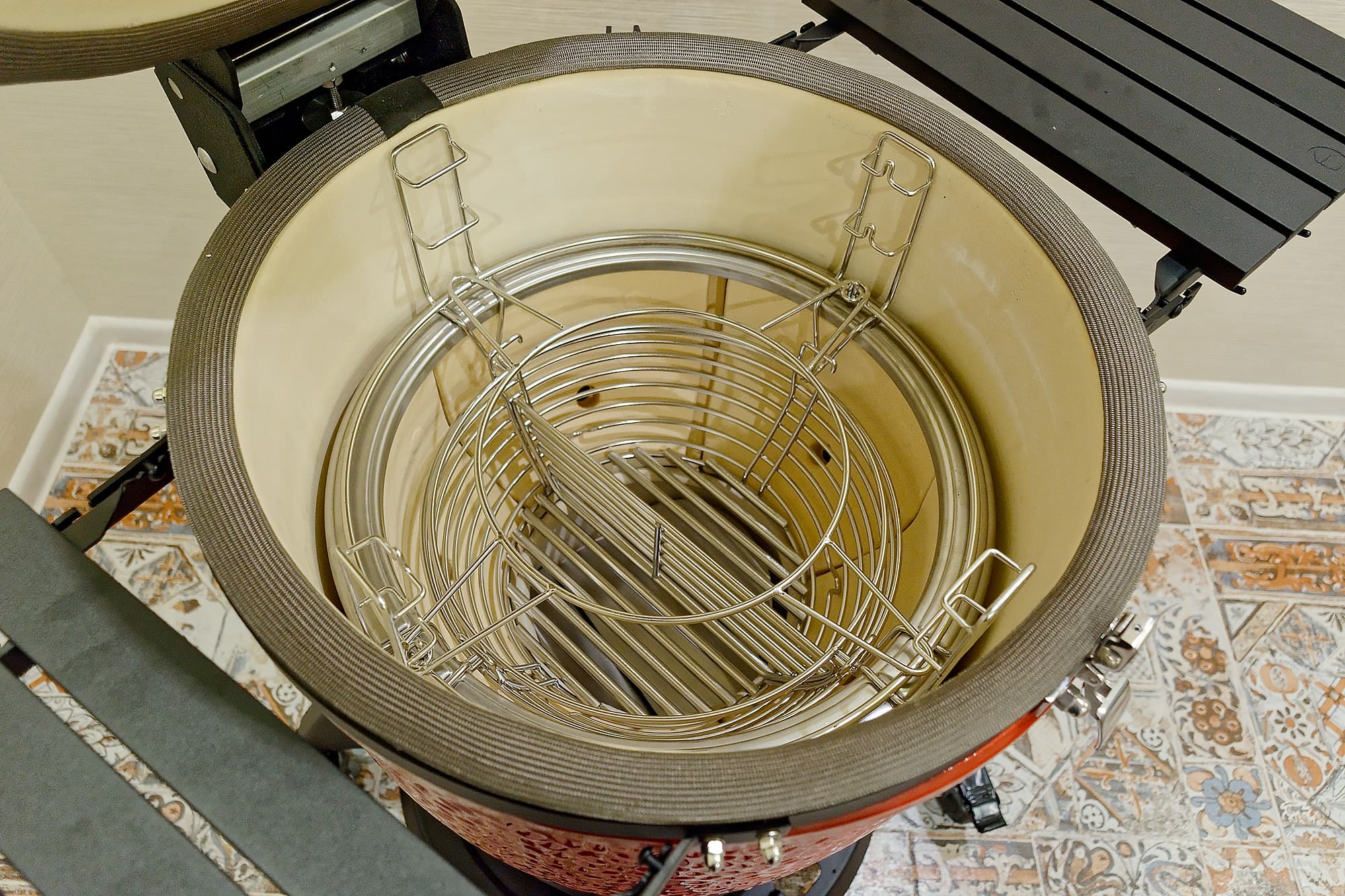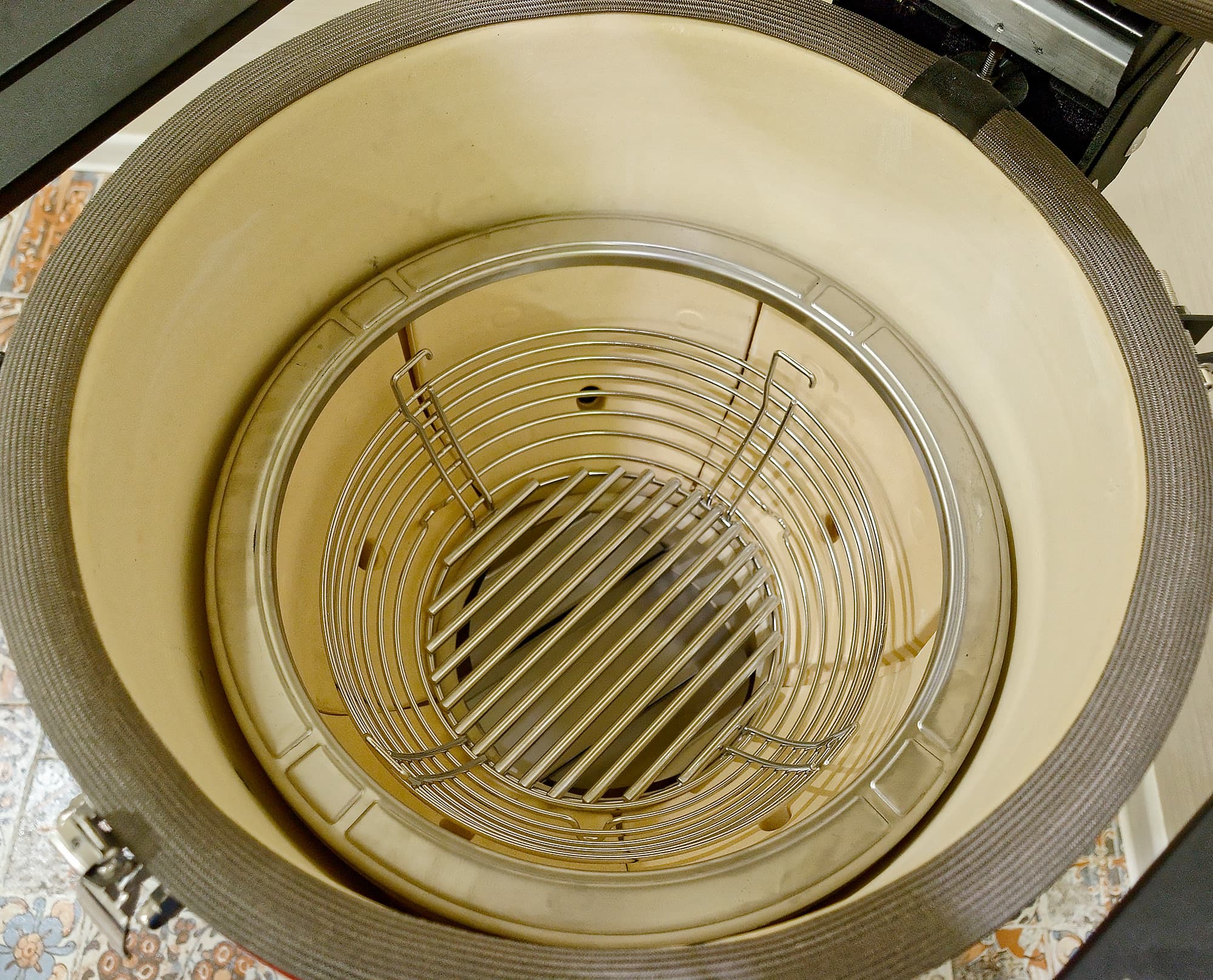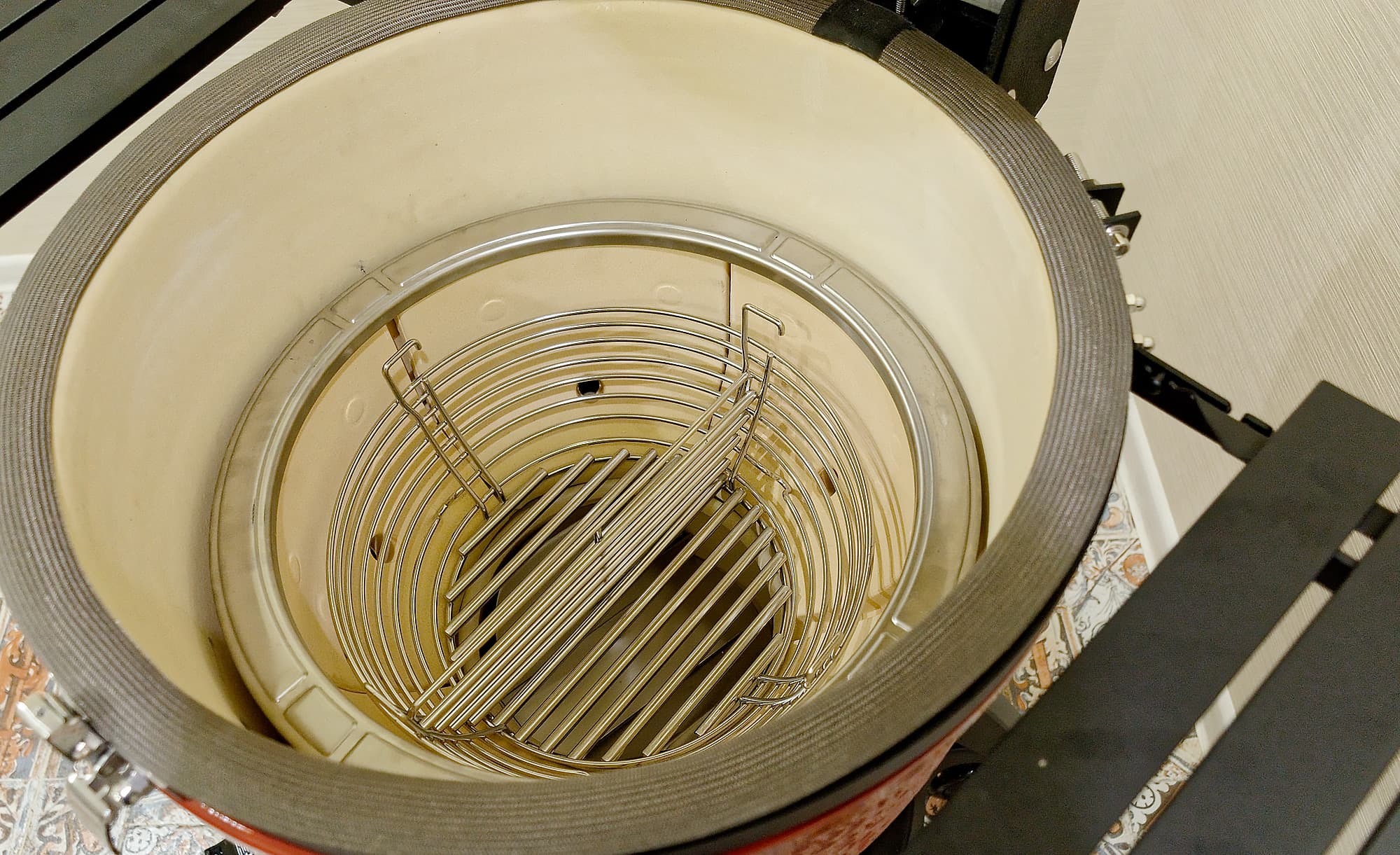 Простецкий чугунный колосник традиционных керамических грилей заменила «мискообразная» камера сгорания, сделанная из толстого стального прута. И не только из эстетических соображений.