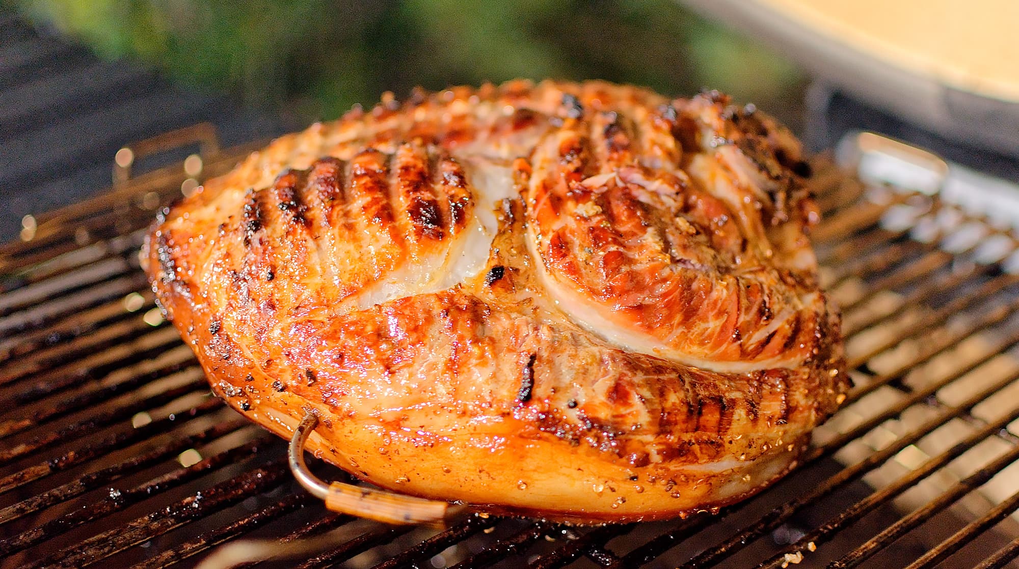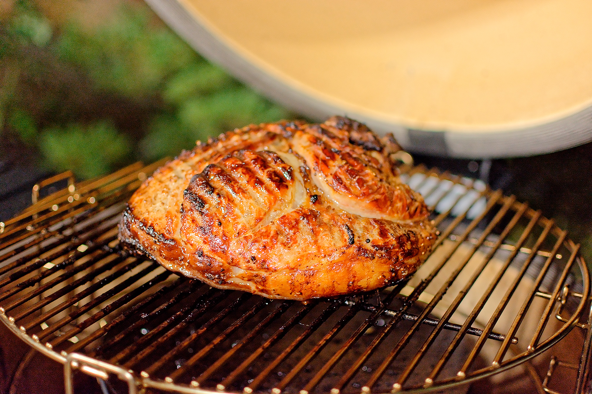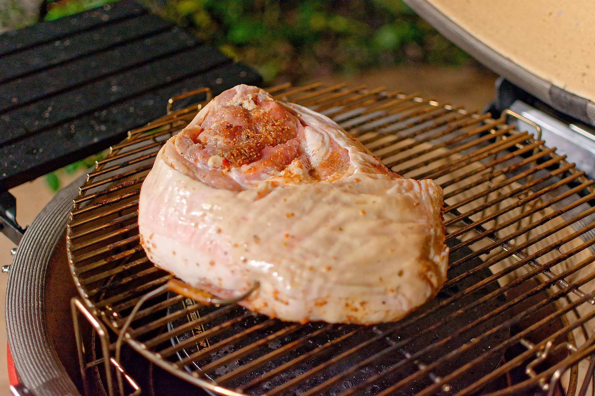Теперь работаем с циклонной системой и большим кусочком мяса. Свиной окорок замариновали на сутки в соли, специях и яблочном соке и поместили в отрегулированный на средний жар гриль.