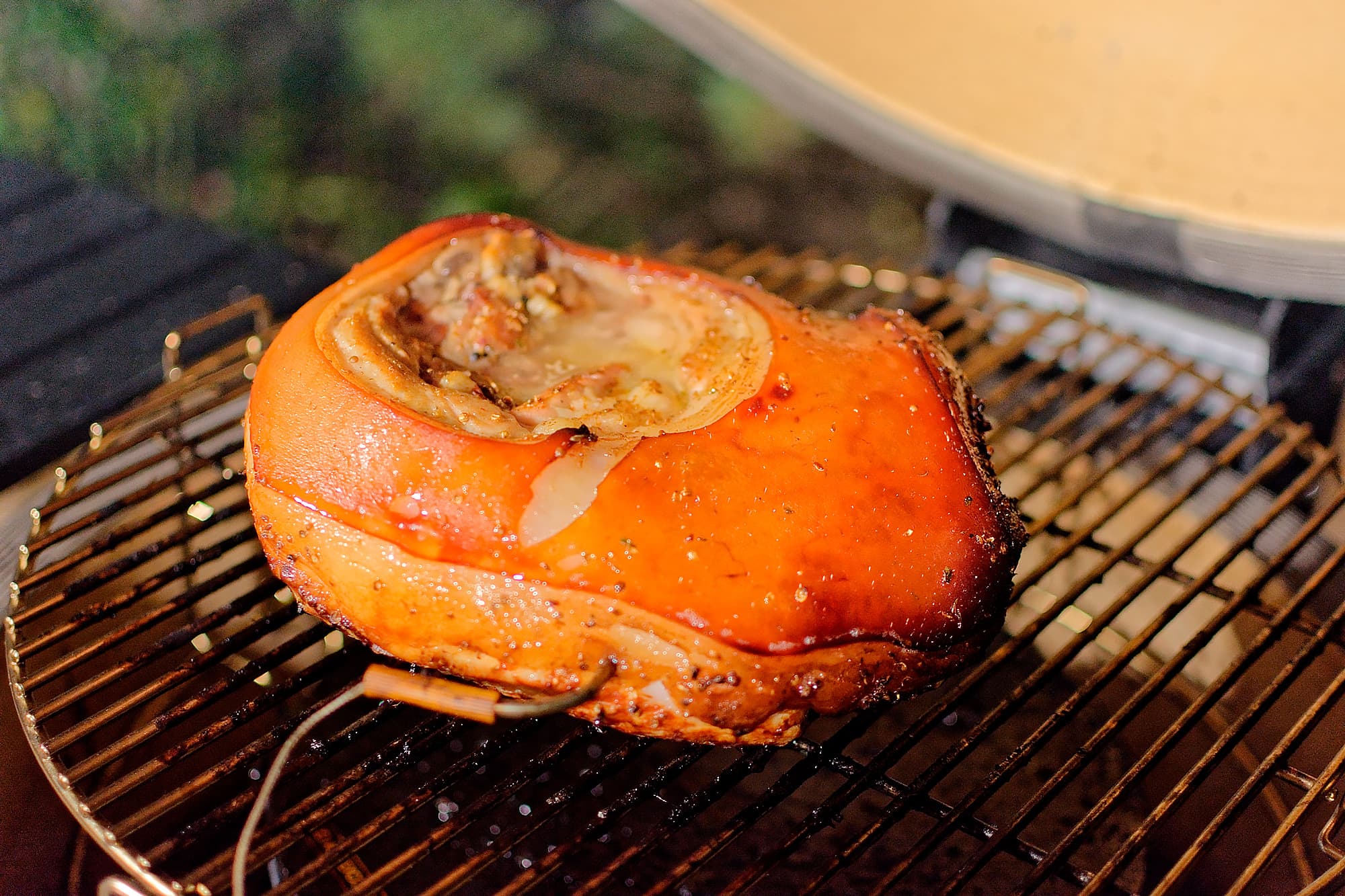 Закрыли крышку, предварительно воткнув в окорок термометр.