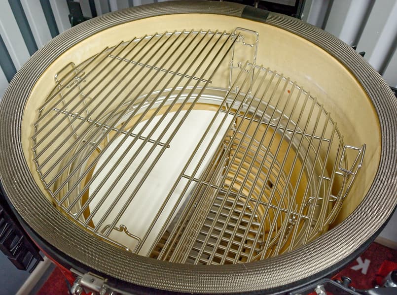Керамический жароотсекатель тоже более продвинутый, чем в классике: он разделен на две равные части. Таким образом, можно сделать так, что работать он будет только на половину гриля и готовящихся в нем продуктов.