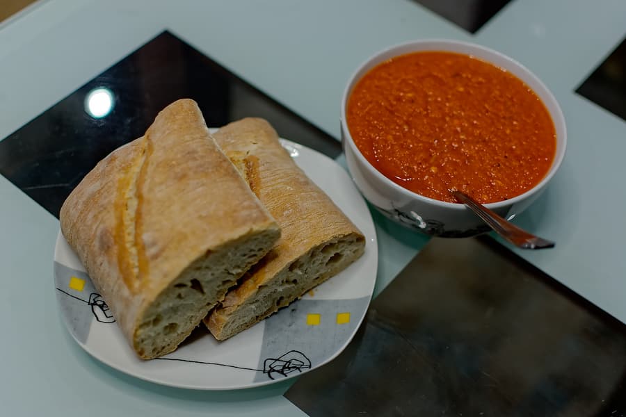 Перцы же через 20 минут под крышкой мы очистили от шкурки и семечек, а потом отправили в блендер, добавив соли, чеснока и острой паприки, а также пару ложек оливкового масла.