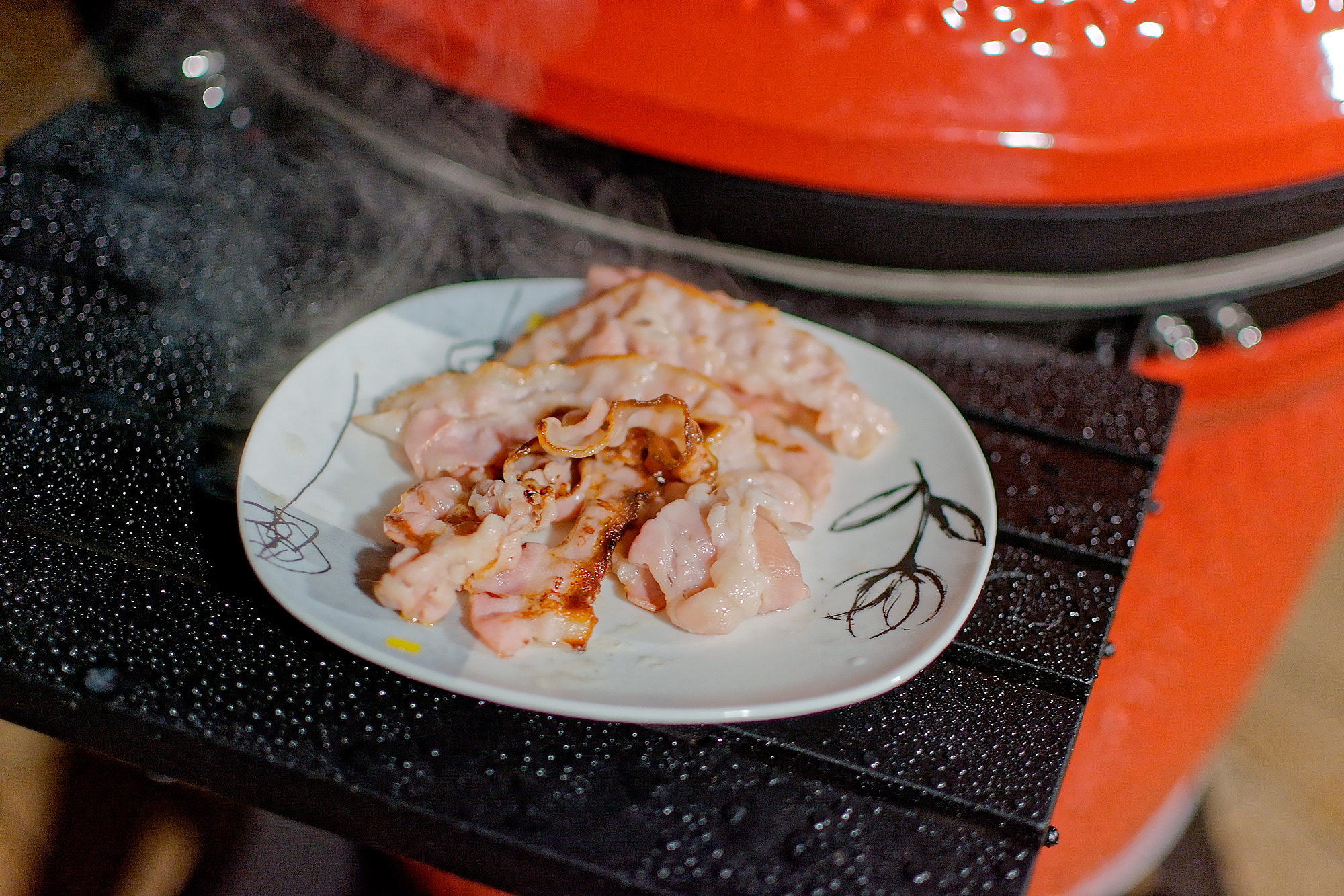Дальше решено поджарить для желающих еще и бекон.