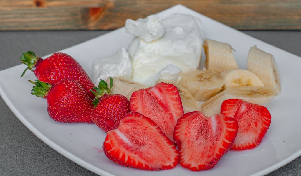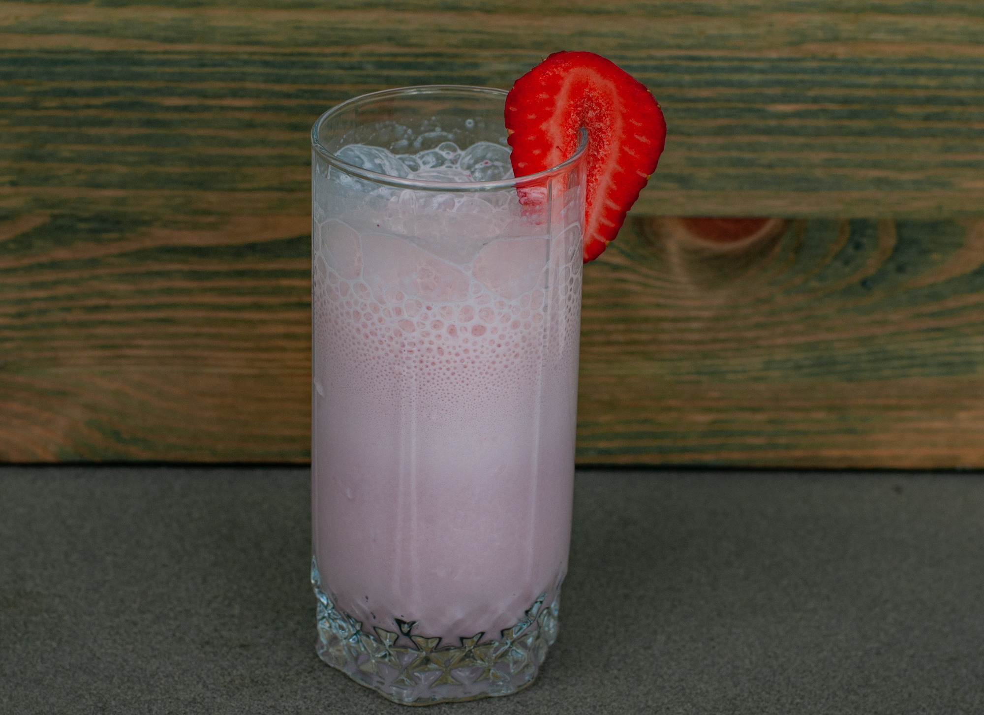Для молочного коктейля мы взяли литр молока, мороженое, банан и клубнику.