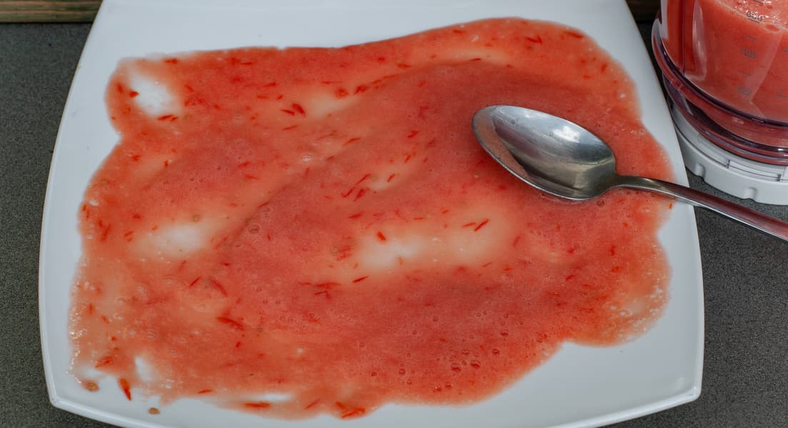 Мы переложили массу обратно в кувшин блендера и измельчали еще 1 минуту на высокой скорости. Фрагменты шкурки стали меньше, но все еще остались крупными, неперемолотые семечки тоже остались.