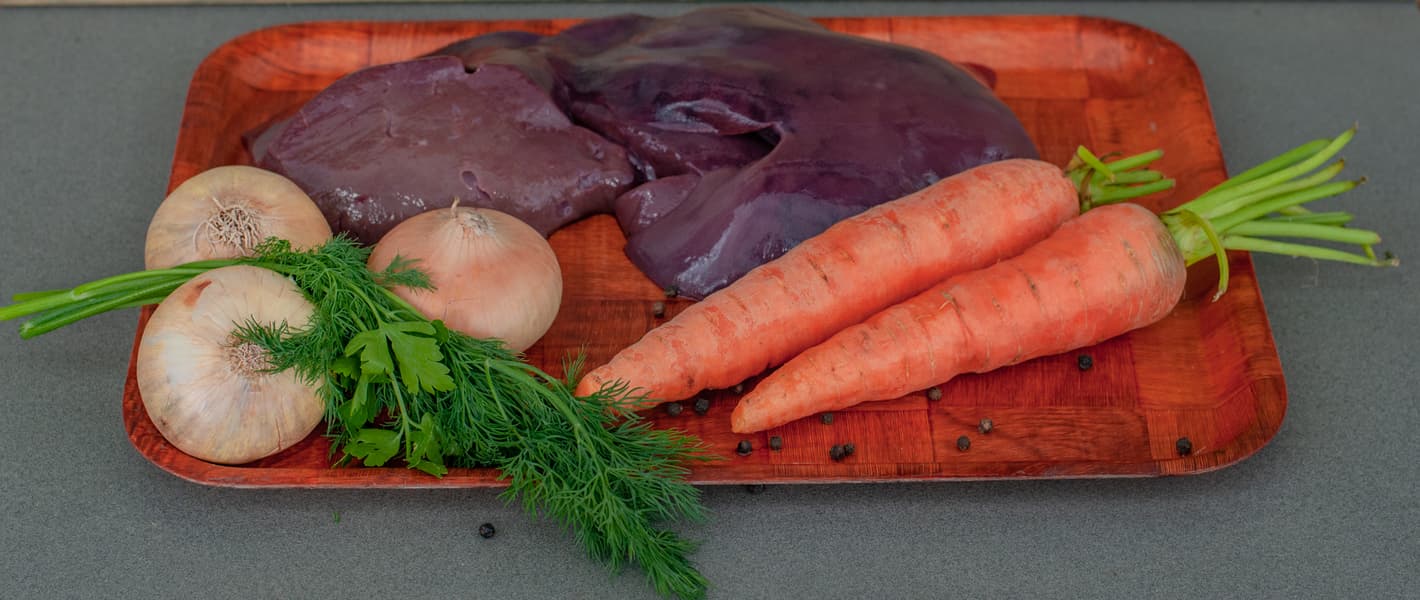 Для паштета мы взяли печень, лук, морковь, зелень, специи, сливочное и растительное масло, соль.